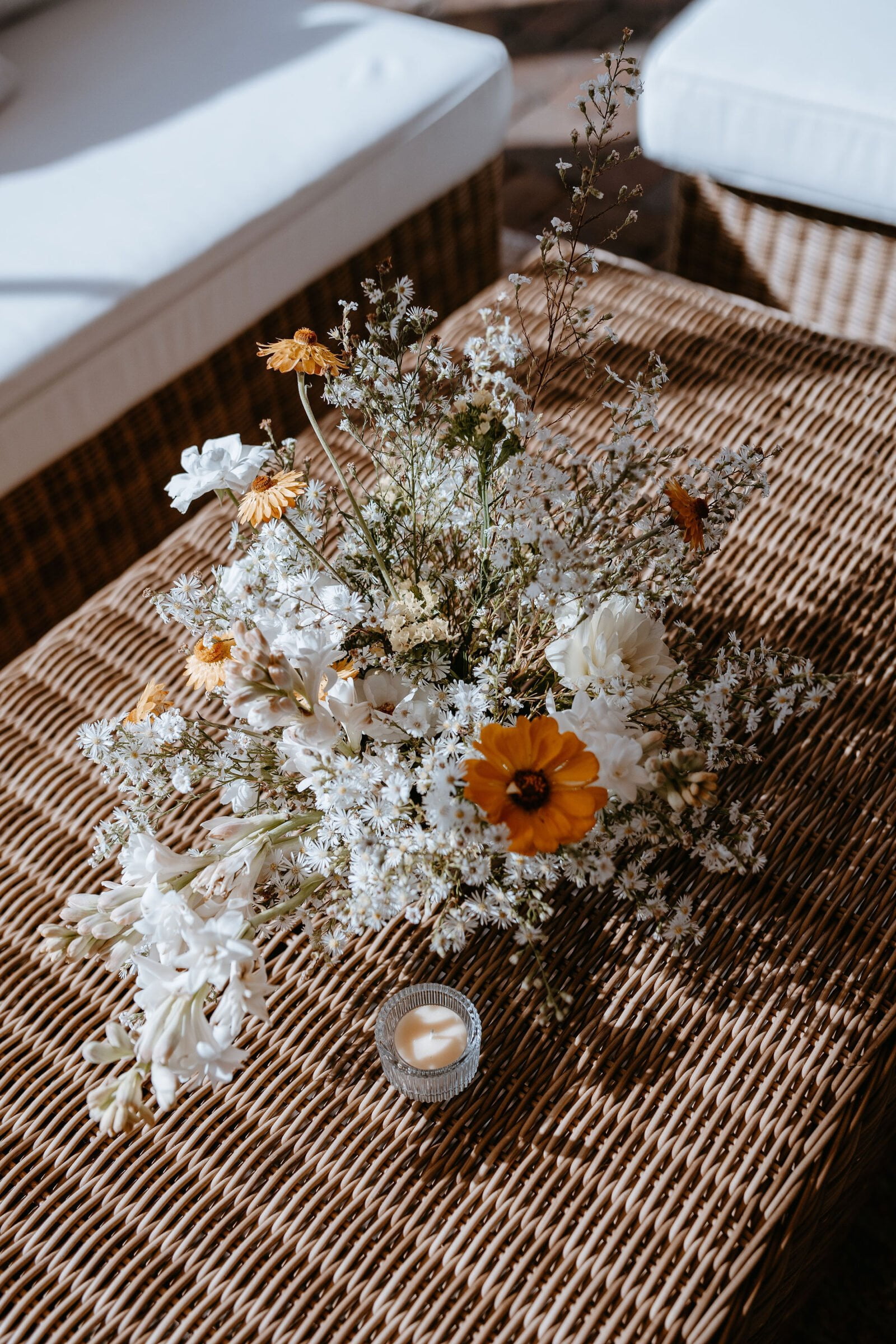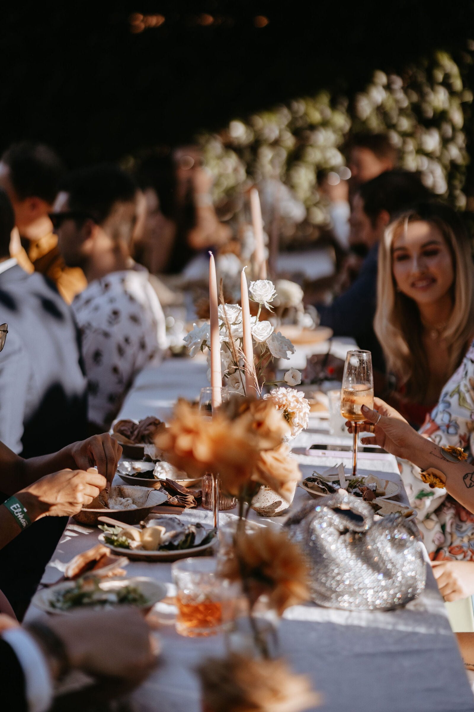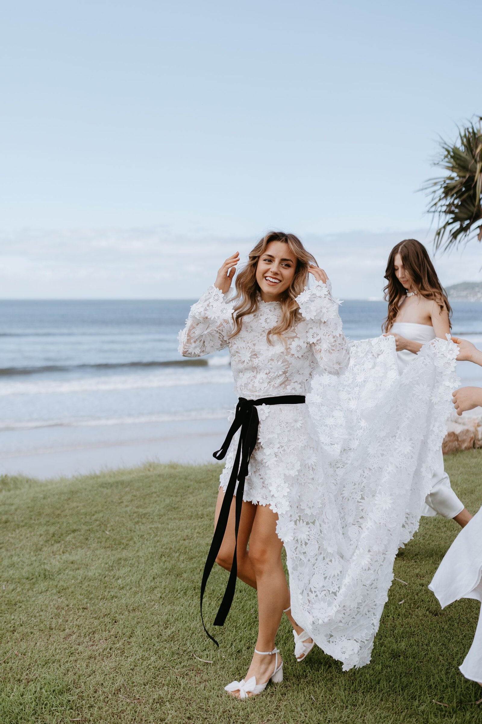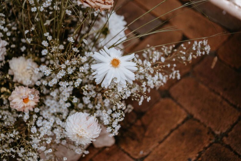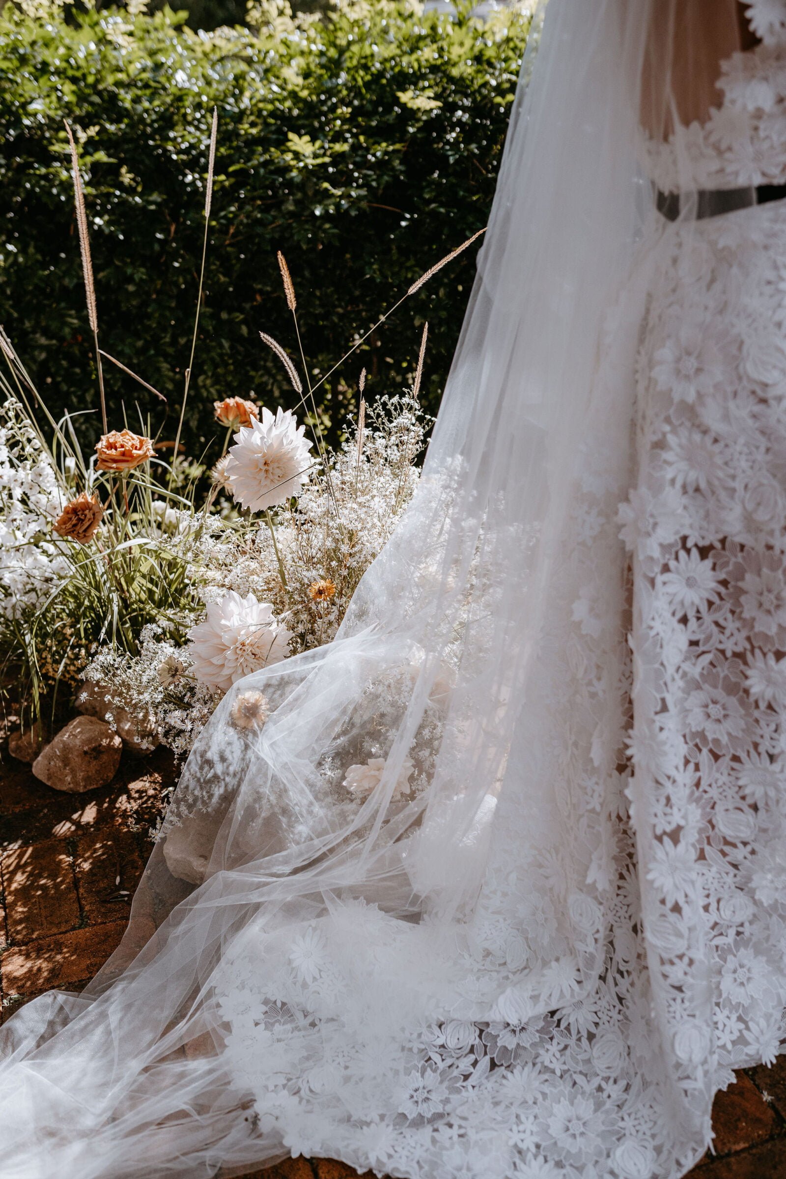 FAVE DETAILS “The speeches – all of them! They were just so special. All of the tears, the laughter and the big warm embraces at the close of each speech. And the flowers! My sister, Em, of FLWR Studio did the flowers and they were so beautiful. I didn’t want anything that would be too time consuming or labor intensive for her as I wanted to spend max time with her. She pulled together my absolute dream of wild grasses with cafe au lait dahlias, everlasting daisies and my favourite – flannel flowers!”