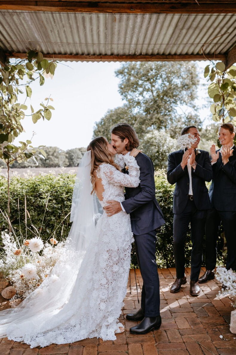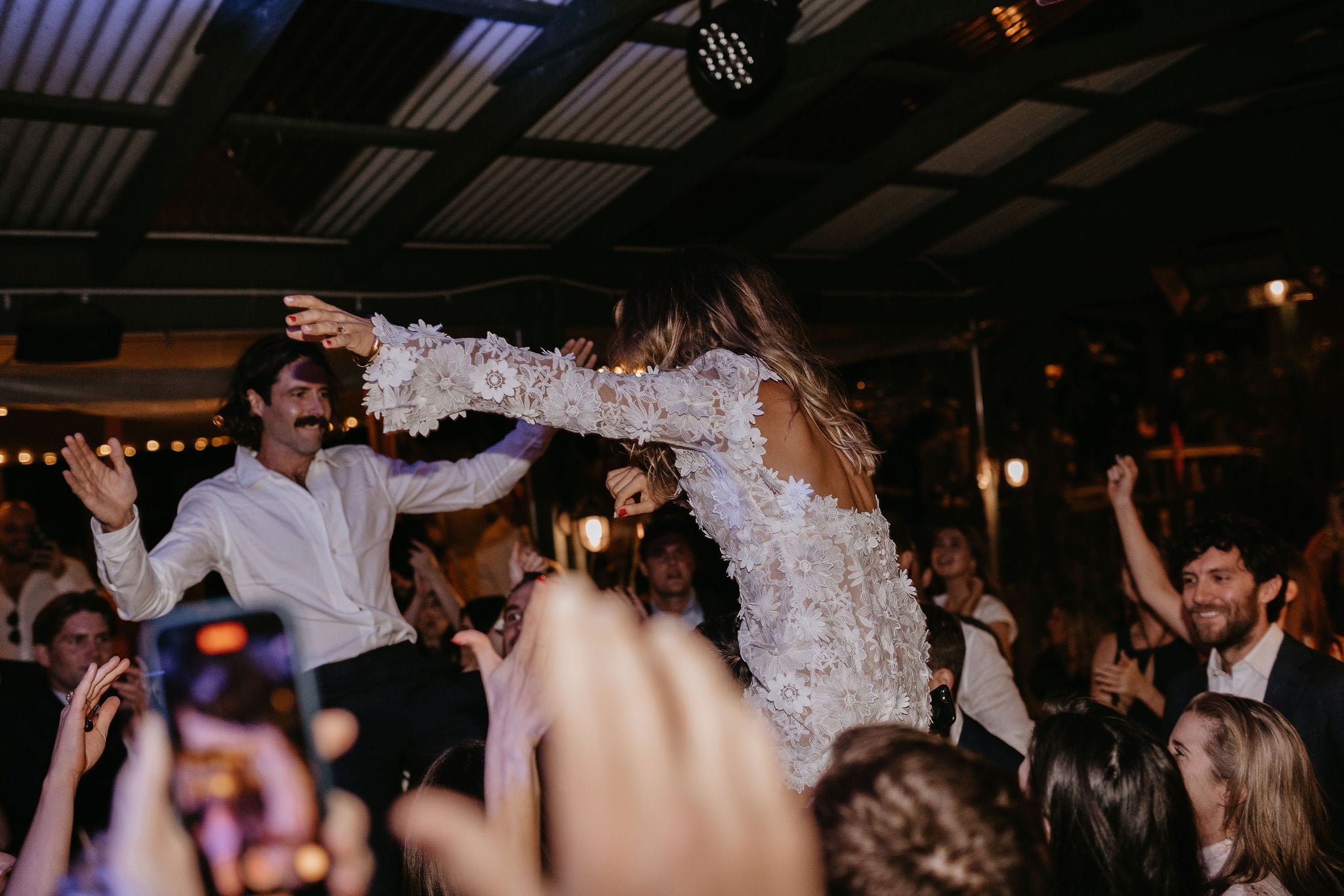 A WORD OF ADVICE “Photographers and videographers are worth their weight in gold. Weddings are expensive and almost everything you spend money on is used up on the day, but the photos and videos you get to keep forever. They’ll bring you so much joy for the rest of your life so if your budget is getting tight, try to cut from somewhere els! Also Matty of the Eltham Hotel gave us a stellar piece of advice that I’ll forever impart to couples about to get married – at some point during the night, make sure you and your newly wedded lover take a quiet minute to step away from the party and look back at all of your guests. It is an incredible feeling when you look in and see all of your favourite people having such a great time and it’s all in the name of your love!”