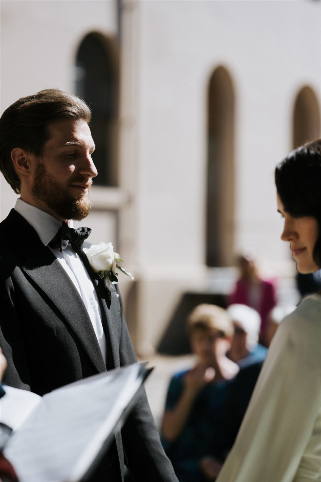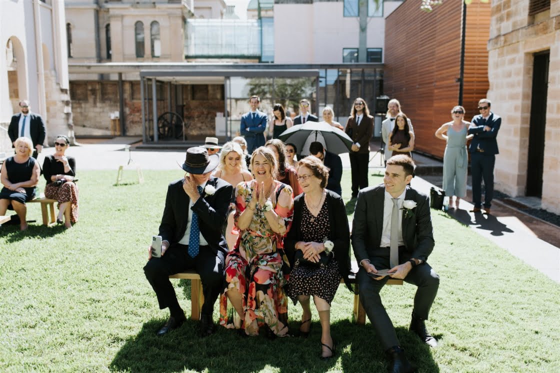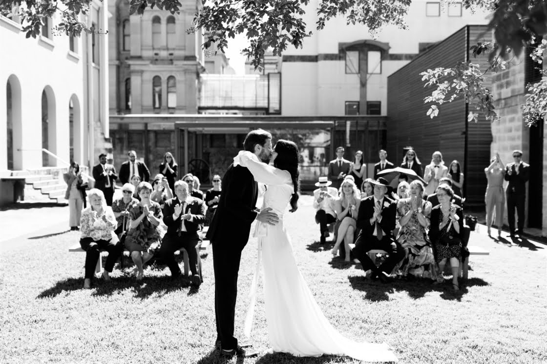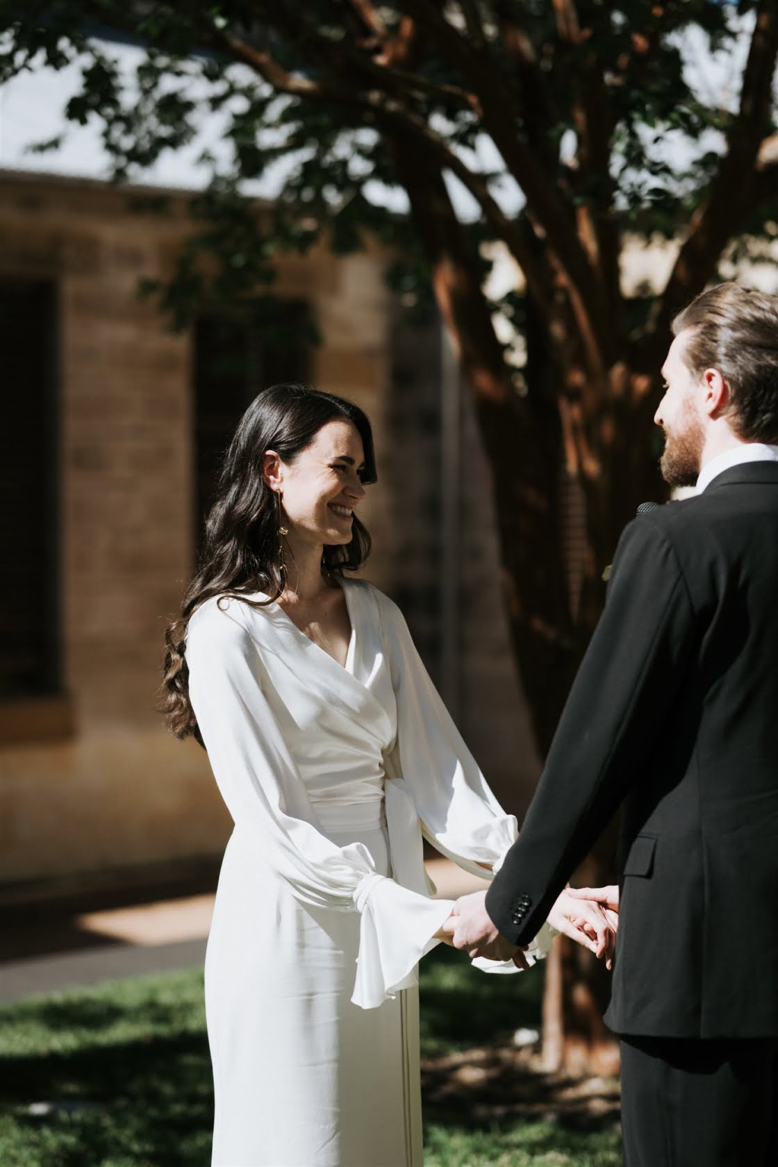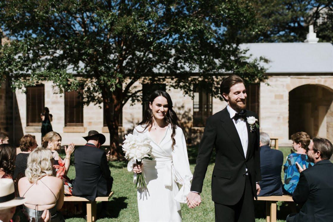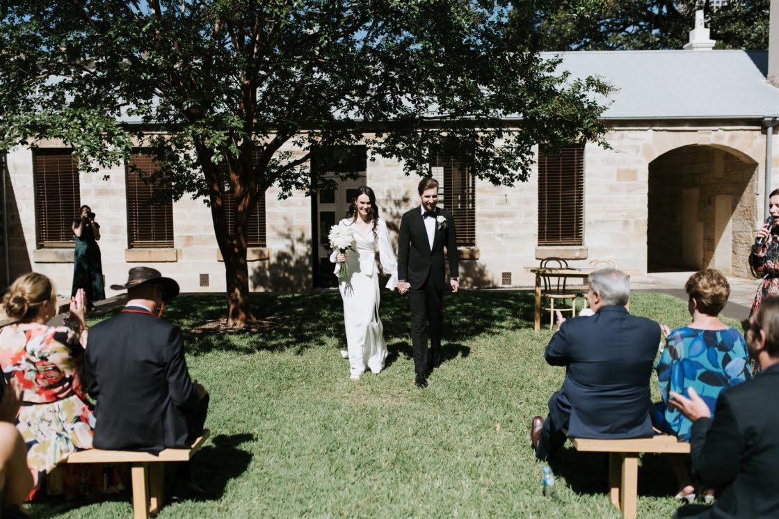 THE VENUE “We wanted to get married outside in a garden. We also wanted it to be private, have a wet weather option available and didn’t want to have to pack up anything or set it down. Enter The Mint (Sydney Living Museums). It was very easy and a beautiful venue – a sandstone courtyard, pretty tree and well-kept lawn. We wanted it to be low key, personal, happy and fun. I think we pulled it off.”