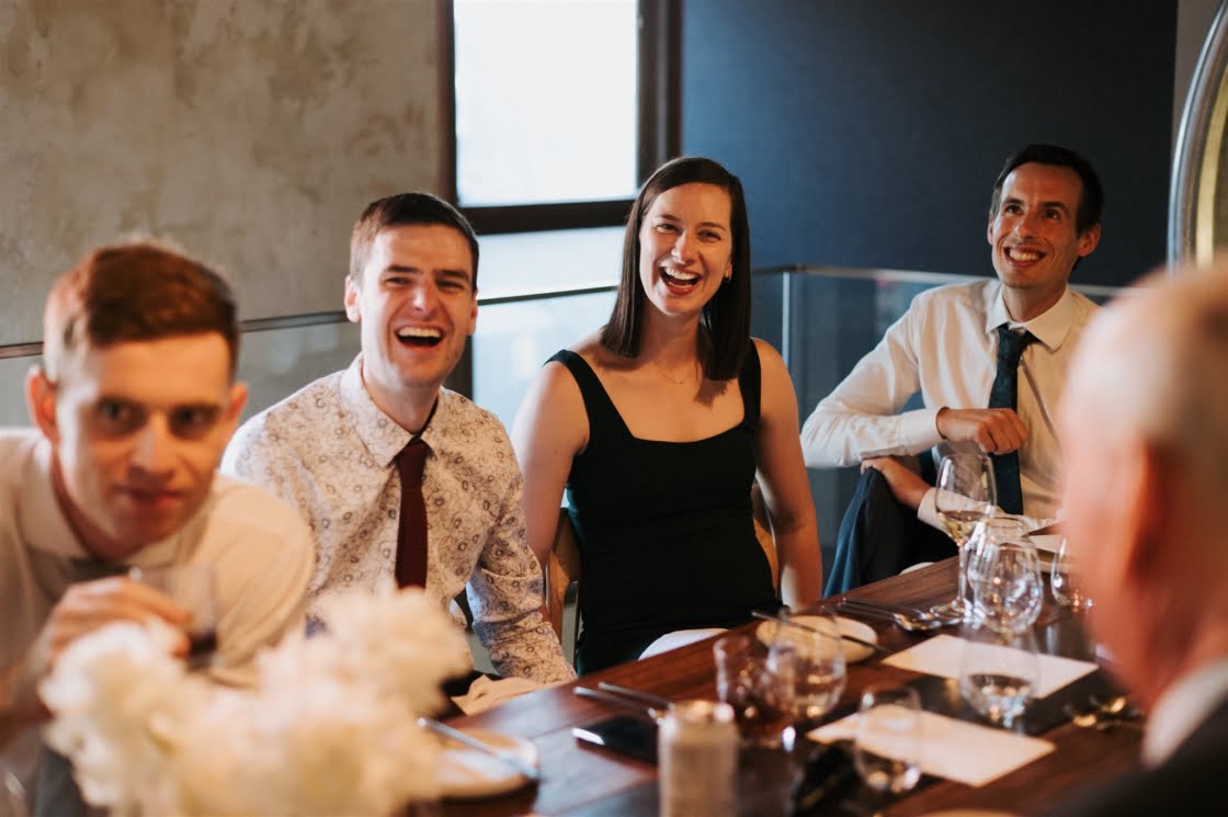 FAVE DETAILS “The food at Automata. We had a seven-course degustation with matching wines, plus snacks beforehand. Our guests have kept telling us how great it was and we can’t wait to go back. Dan read out a satirical news story about our family at the end of the wedding ceremony for some laughs, and the brass band played the classic ABC News theme.”
