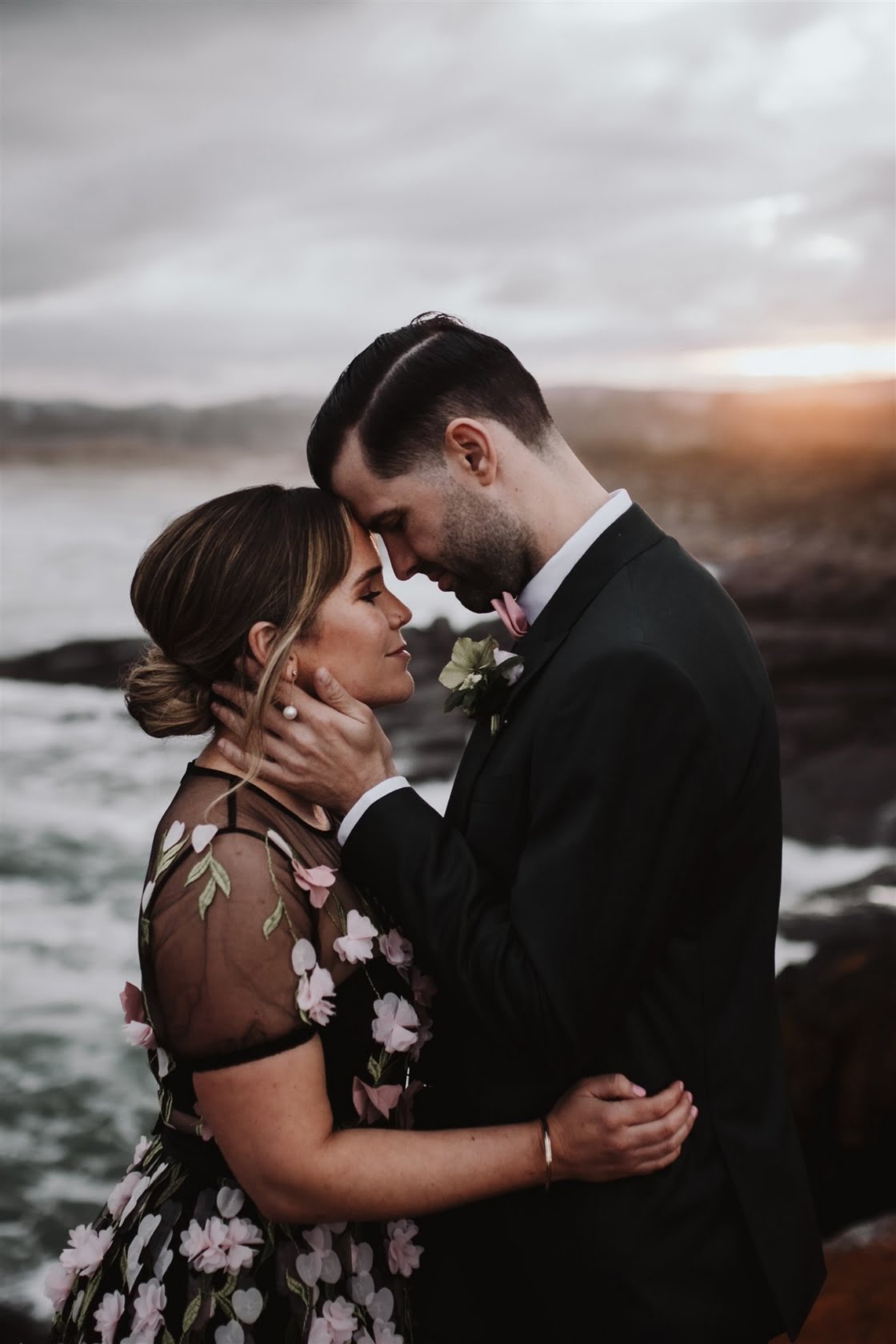 FAVE DEETS “I loved the fun, playful flowers by The Floral Criteria. The moody, stormy weather that afternoon, while not necessarily what you’d think of for ideal wedding weather, made for a beautiful and dramatic view over the bay and a cosy meal with a roaring fire that lasted well into the night. The food by Hubert + Dan was also absolutely spectacular.”