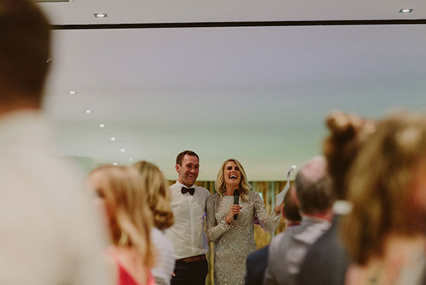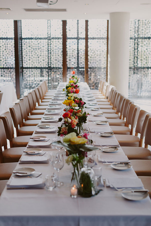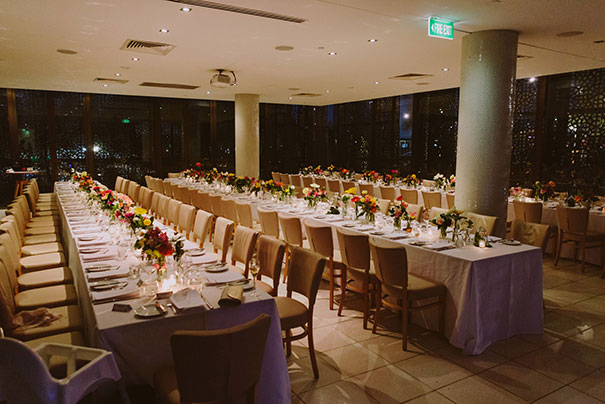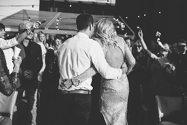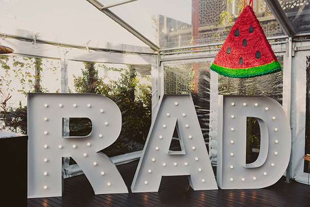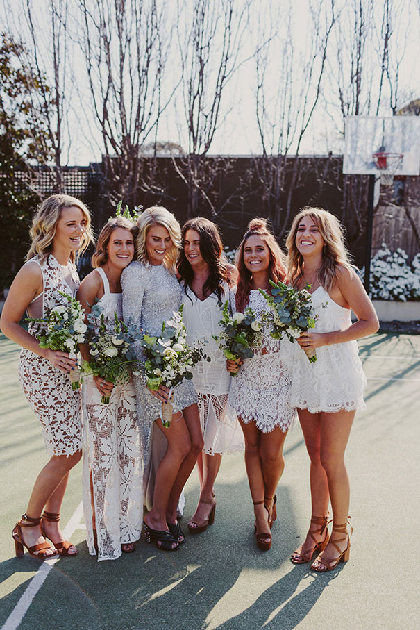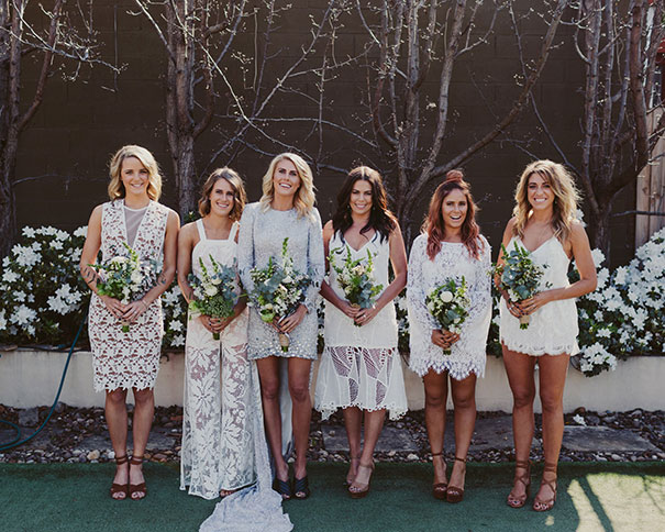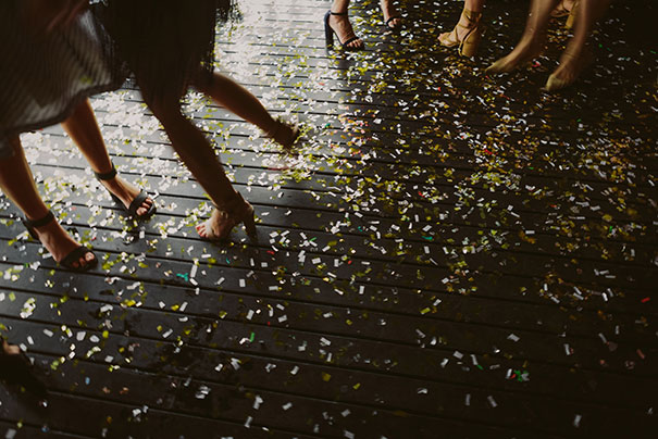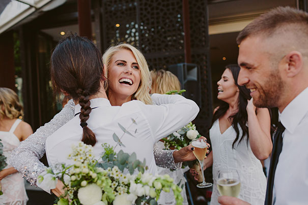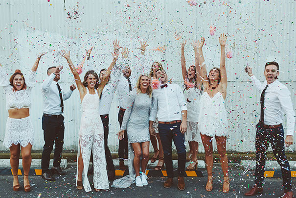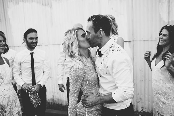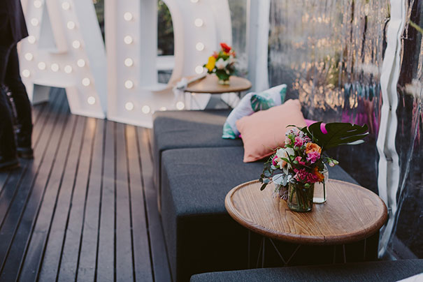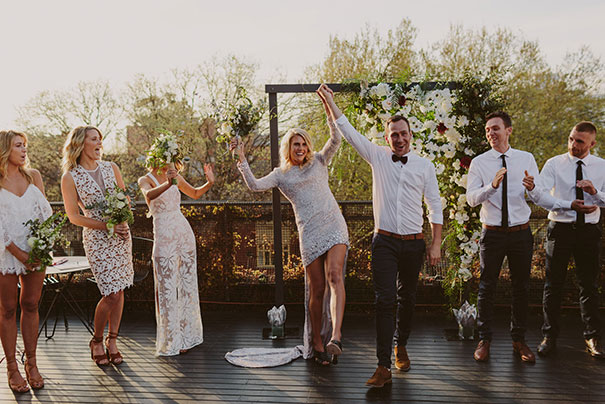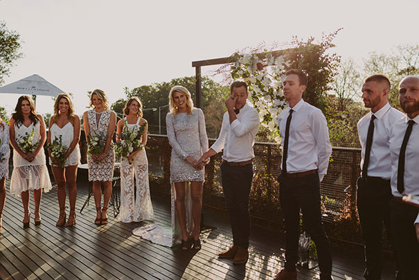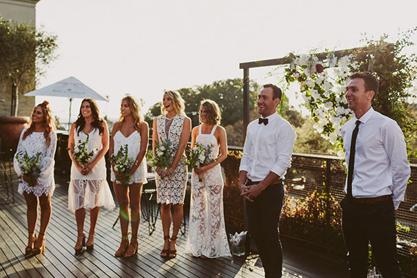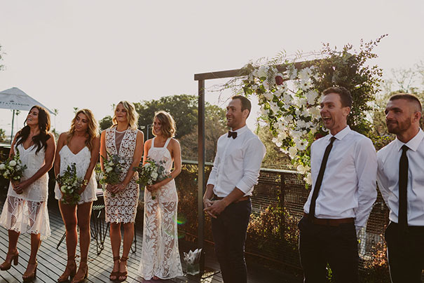 CREDITS Photographer Beck Rocchi // Cinematographer Tom Swinburn // Stylist and florist Flower Jar // Stationery and signage Life is Peachy // Ceremony, reception and catering The Deck Circa, VIC // Decorative elements Big Letter Co. // Sound hire Marketing Melodies // Entertainment Luke Morris Music // Bridal gown designer Julie Goodwin Couture // Lingerie Gooseberry Intimates // Shoes Gucci and Converse // Makeup Georgie Morgan // Bridesmaid dresses For Love and Lemons, Alice McCall and ASOS // Suit, bow tie and shoes Topshop // Shirt Scotch and Soda.