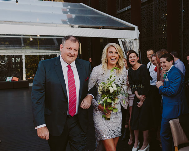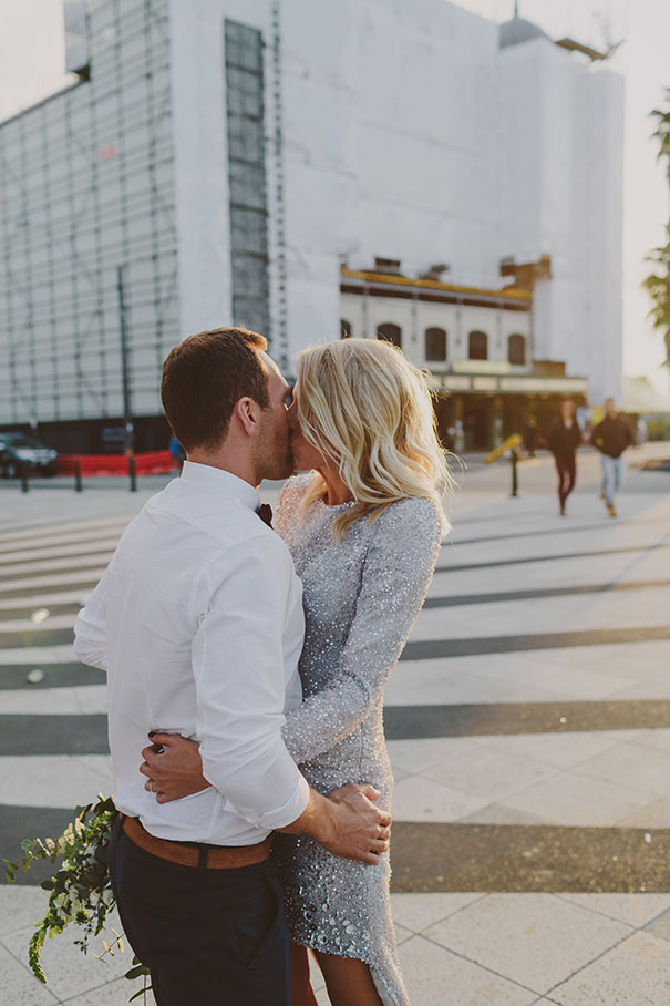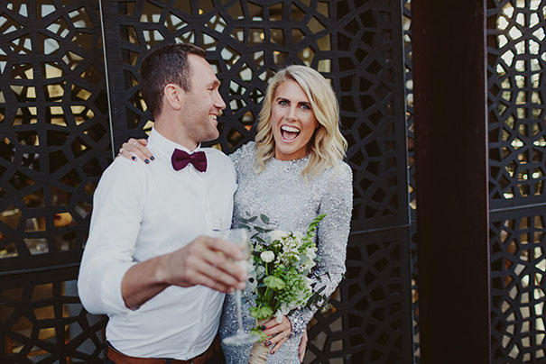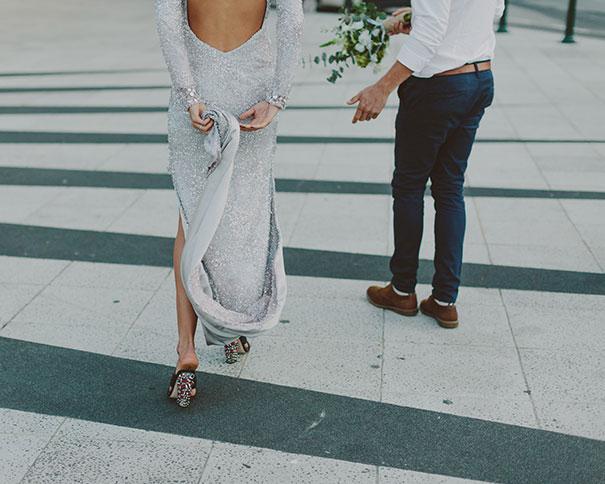 £I wanted it to be a non-traditional wedding which was like nothing anyone had been to before. Nick and I love to party so to have that fun vibe was extremely important to us. A fun vibe, indeed, Kappy took chill to a whole new level, walking down the aisle to Take A Walk on the Wild Side’ by Lou Reed and opting for a quick photo sesh at one of the city’s most iconic locations with photographer Beck Rocchi.