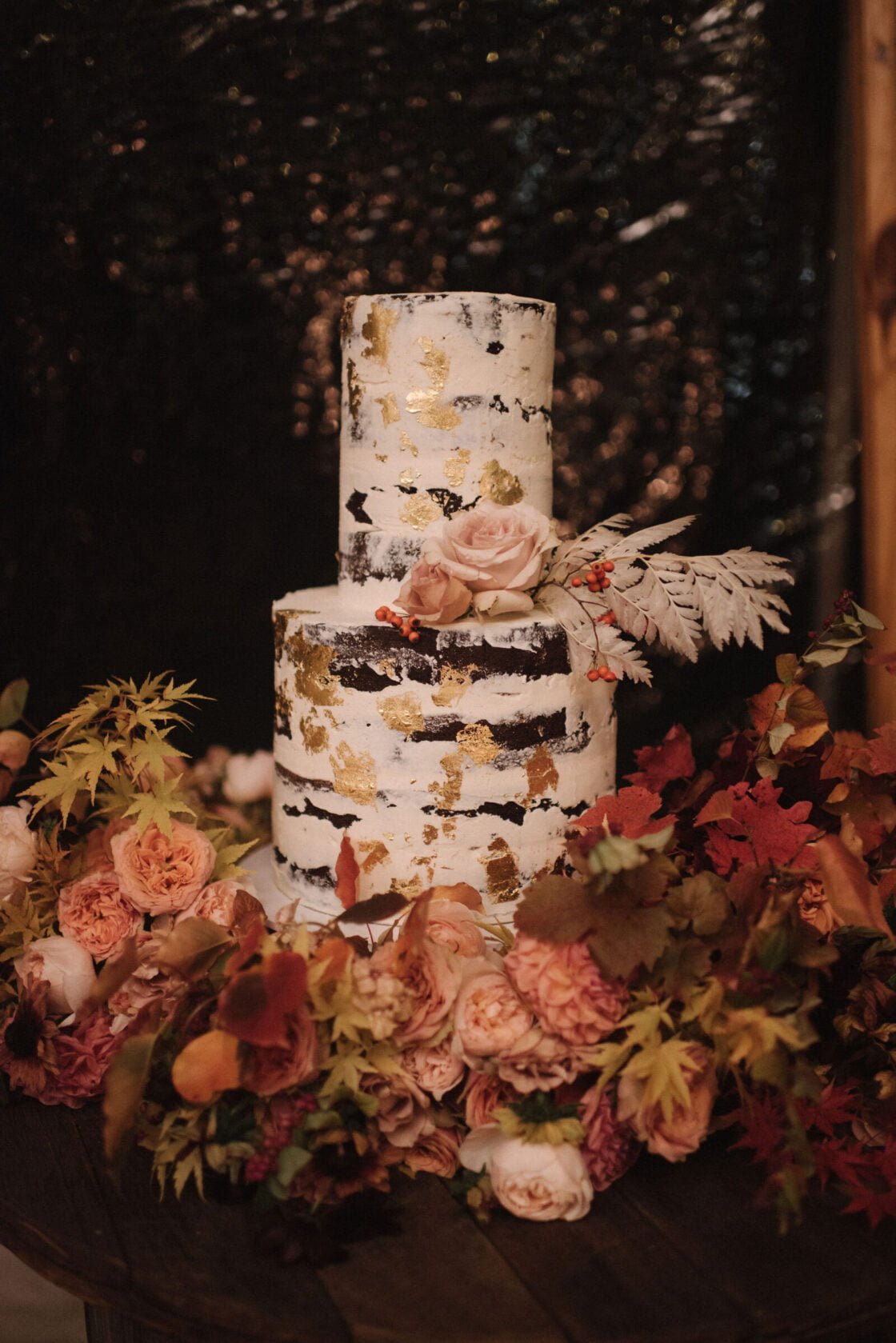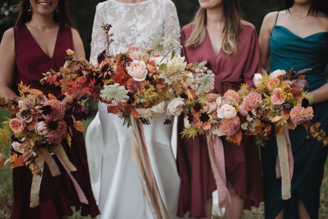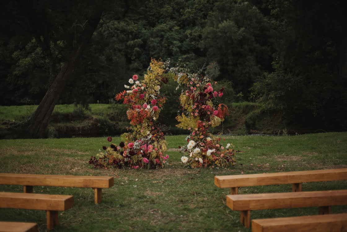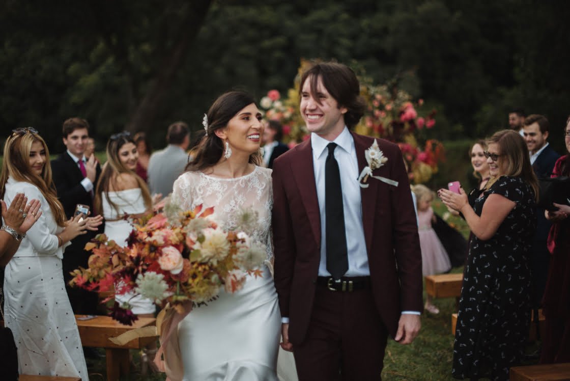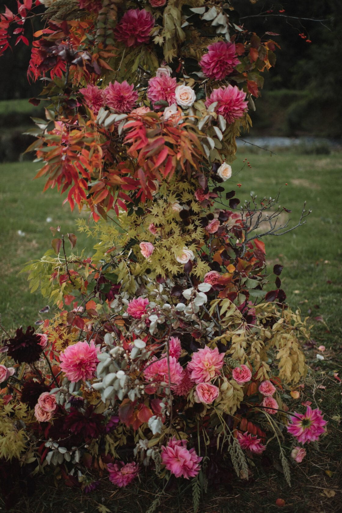 FAVOURITE DETAILS “The arch! It was a perfect representation of Autumn. Alice Beasley did the most incredible job. She went driving around for hours foraging foliage the day before and came back with a van full of branches! Our friends sang and performed and that meant the world to us. It was like a big jam night! I also loved my headpiece, it’s truly unique and romantic. I knew I didn’t want to wear a veil so it was the perfect alternative.”