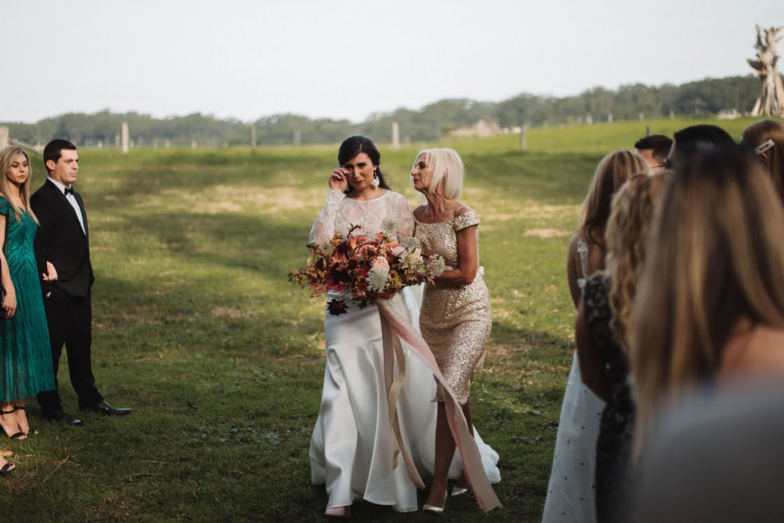CONTRIBUTING VENDORS Photographer Ben Sowry Photo Cinematographer Agape Stories On The Day Coordinator The Wedding + Event Creators Stylist, Stationery & Signage River & Eve flora (Bride) Florist Alice Beasley & River + Eve Flora Ceremony & Reception Willow Farm Berry Catering Garnish Creative Catering Drinks Caravan Kechua Mobile Taproom Cake Friend Wedding Favours Custom Favours Hire Items, Lighting & Sperry Tent South Coast Party Hire & Ashdown and Bee Entertainment Dave Bova Celebrant Todd Mayhew THE BRIDE Bridal Gown Karen Willis Holmes Hair Piece & Earrings Twigs & Honey Ring Eternity Jewellers Shoes Jo Mercer Hair Family Makeup Makeup by Megan Bridesmaid Dresses Sheike Bridesmaid Shoes Novo THE GROOM Suit & Shirt Suit Supply (Custom) Ring Dora Shoes R.M. Williams