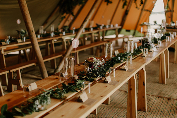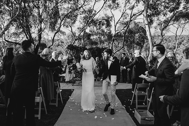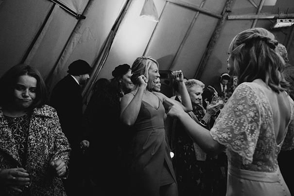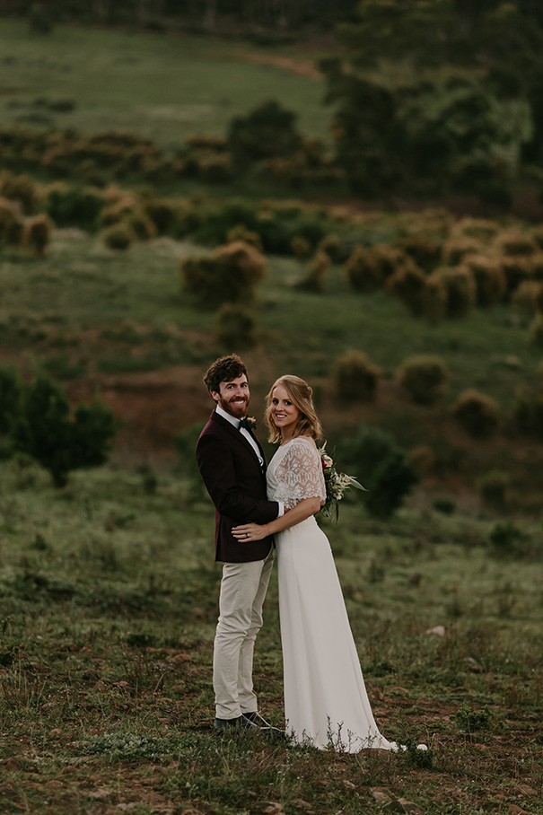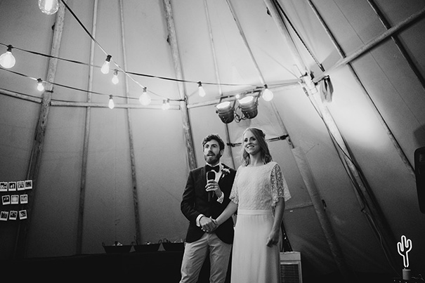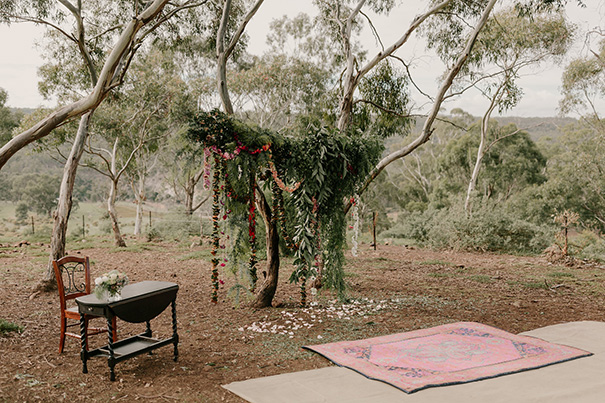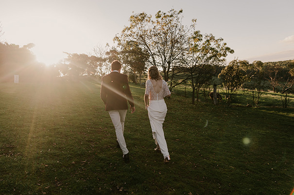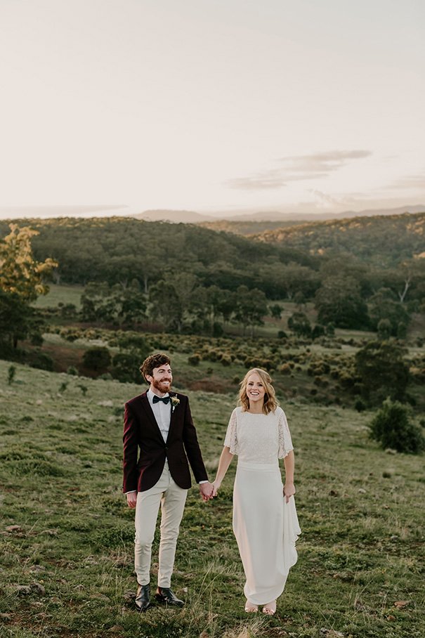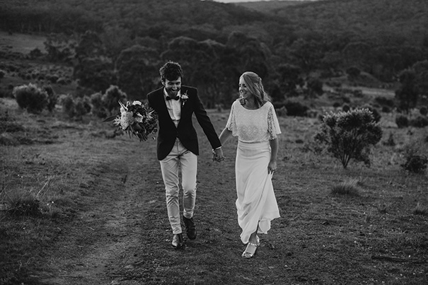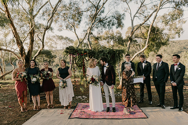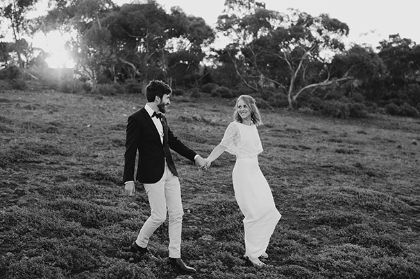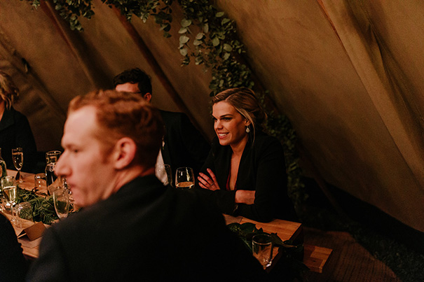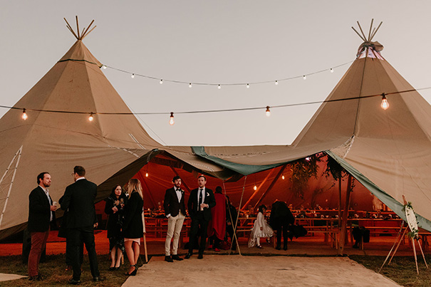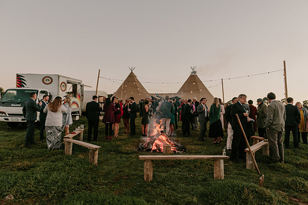 CREDITS Photos Zoe Morley // Florist Badlands and Co // Ceremony and reception Camp Sunnystones, VIC // Catering Digging For Fire BBQ // Food trucks / carts Wandering Woodsman Caravan Bar // Other desserts Mr Nice Guy’s Bake Shop // Prop / furniture hire My Sweet Event // Teepee Tipi Kata // Lighting / sound Event Power Solutions // Signage Arlo and Co // Entertainment Snacks With Yeo // Celebrant Agi Pallos // Rings Blanca Monros Gomez, Catbird and Honngaii Jewellery via Etsy // Bridal gown Donatelle Godart // Bridal boutique The Mews Bridal // Lingerie Calvin Klein // Shoes Dune London // Hair and makeup Nicole Groch // Bridesmaid dresses Spell & the Gypsy Collective, Myer and Asos // Bridesmaid shoes Midas // Suit, cufflinks and socks Asos // Shirt TM Lewin // Suspenders Fjallraven // Bow tie Fat Betty’s Bow Ties via Etsy // Shoes RM Williams.