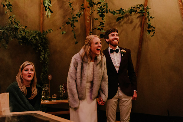Hoping to create a day that was filled with the things and people that they love, Kate and Joe organised their wedding at Victoria’s Camp Sunnystones with a particular theme in mind. “We liked to call it a Nordic winter dance party. We wanted it to be relaxed, full of great music and as much dancing as humanly possible. Success!”, says Kate, who hired photographer Zoe Morley to capture the day.