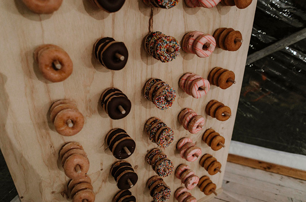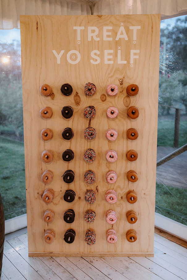 Set in the serene natural beauty at Growwild in the Southern Highlands, the hands-on couple designed the stationary, hand-painted all the signage, built the funkiest dessert donut wall (a la Krispy Kreme), and with the help of a friend, did the early morning flower market run and floral arrangements.