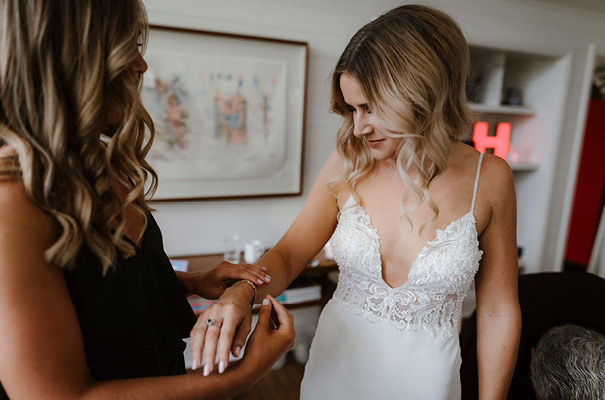 Even Dean Snushall their photographer turned “great mate” lent some beautiful décor for the day. Another hero vendor moment was when two weeks before the wedding, Kate fell in love with the newly released Made With Love Bridal Sienna dress – different to the one that had been purchased and tailored to fit over the course of the previous six months.