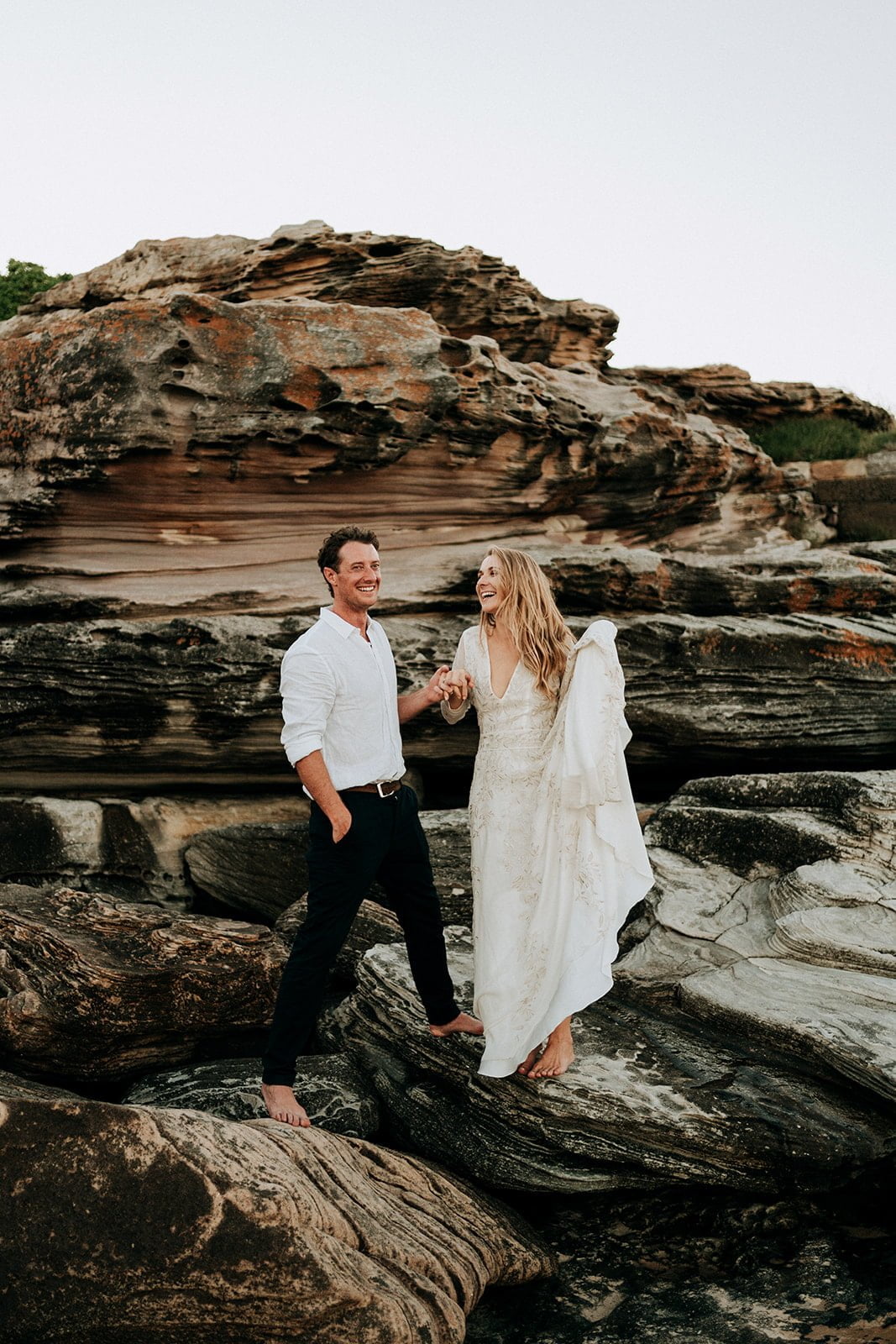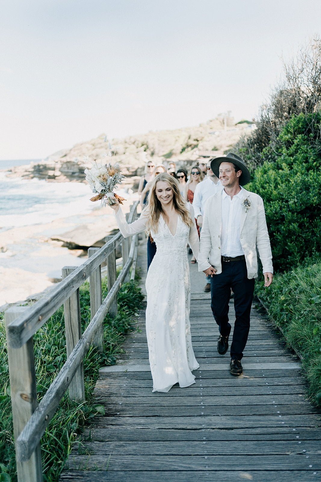 Bride Katie is a wedding stylist (The Bluebird Collective FYI), so it comes as no surprise that this big day was planned to a T and included some of the most legendary vendors in the biz. We’re talking a custom made L’eto Bridal gown, noms from the guys at The Wilderness Chef, vow cards and bar menu by Rebel Reflect, and these here gorgeous snaps by HM fave Folk + Follow. What. A. Lineup. Scroll down for the rest of their cruisey coastal affair…