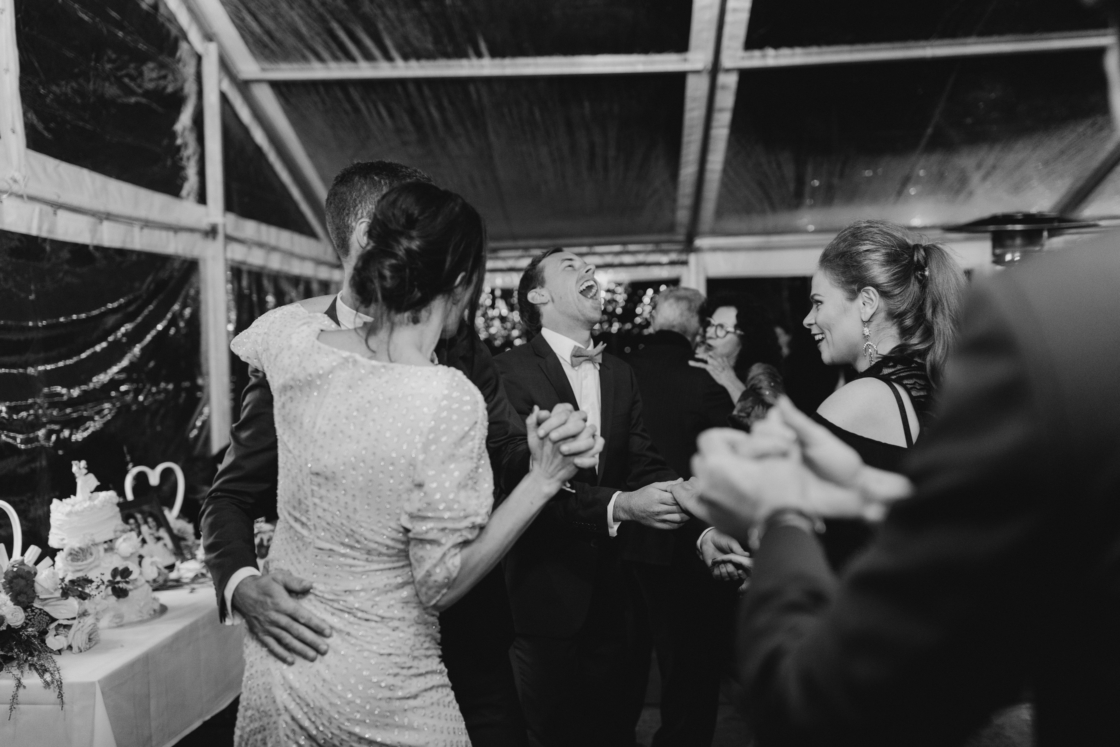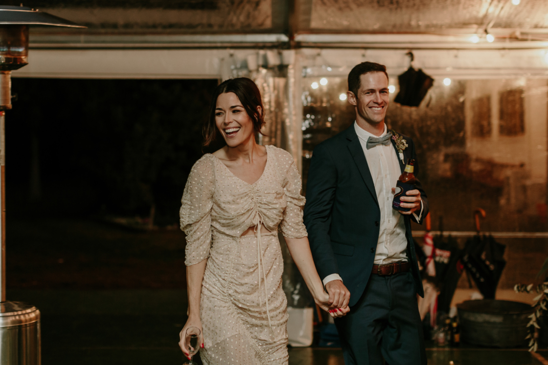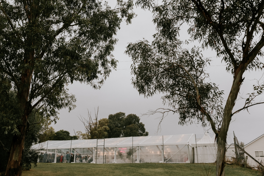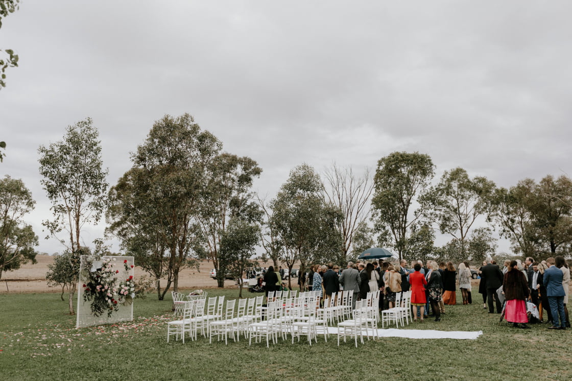 FAVOURITE MOMENT “We absolutely loved having all of our family and friends in one place. We loved how relaxed the whole day was. In the midst of a drought, it ended up raining on our wedding day. We had an outdoor ceremony, so of course, I was feeling a little nervous that we would be completely rained out but what can you do? No point letting it ruin the day. We were blessed with a break in the rain, just long enough to get through the ceremony. Five minutes after the ceremony we all had to bolt back up to the marquee and seek cover. Whilst this was not in our plan, I think it relaxed everyone and we all just had a fun evening.”