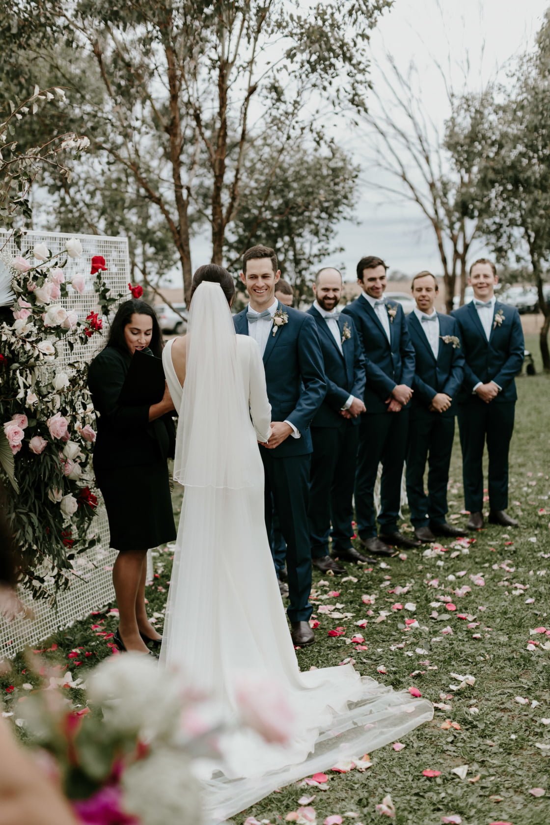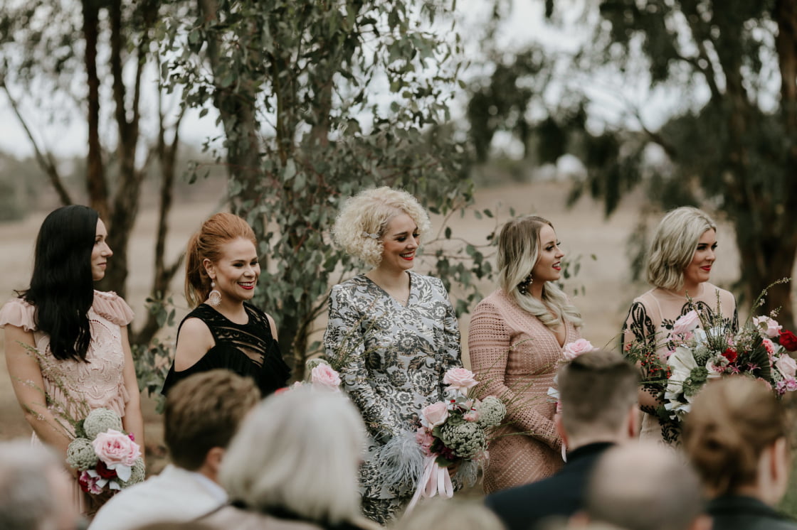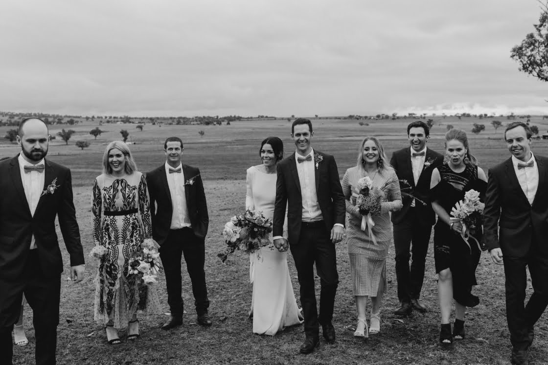 CONTRIBUTING VENDORS Photographer Zoe Morley Photography Event Planner & Stylist YWC Productions Florist Botanica Bird Stationery Paperless Post, Copy That @ Profsec Venue Private Property Catering Relish Catering Hire Items YWC Productions, A1 Hire Lighting Hire Sammy & Lola Celebrant Tie The Knot With Jess Rings Dimani Jewellery Transport Tamworth Buslines BRIDE Dress Pronovias via La Boda Bridal Shoes Kurt Geiger Hair Soho on Bourke Makeup Beautytones Bridesmaid Dresses Alice McCall GROOM Suit Black Jacket Suiting Bow Tie OTAA Shoes RM Williams Groomsmen Suits Black Jacket Suiting