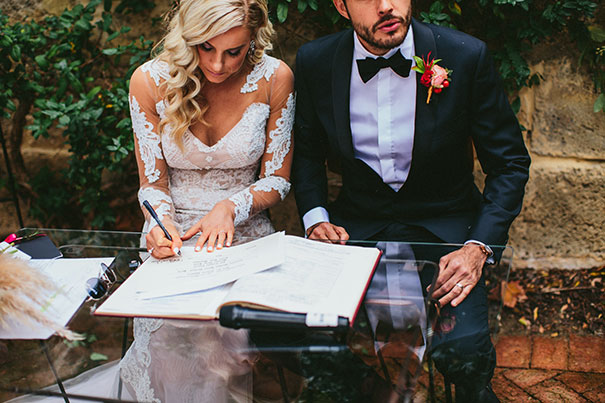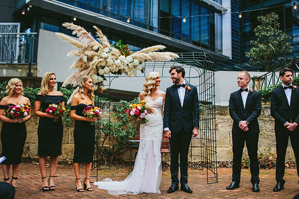 CREDITS Photos Through the Woods We Ran // Bridal gown Donna Tobin Couture // Robes Natalija the Label // Shoes Hobbs // Hair Dale James Salon // Makeup Sarah Beverley // Bridesmaids Misha Collection // Suit MJ Bale // Event planner / stylist The Butcher, The Baker, The Stylist & Creator // Flowers Fox & Rabbit // Stationery and signage Nestle and Porter // Ceremony, reception and catering Lamont’s Bishops House, WA // Hire items Hire Society // Rings Creations Jewellery.