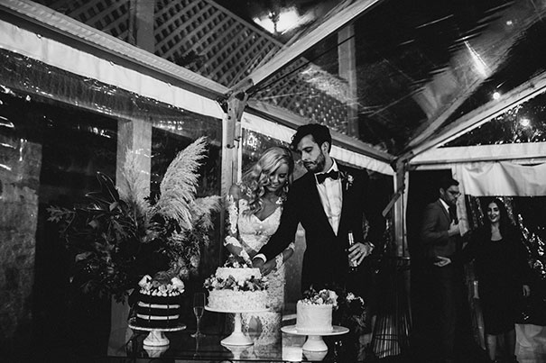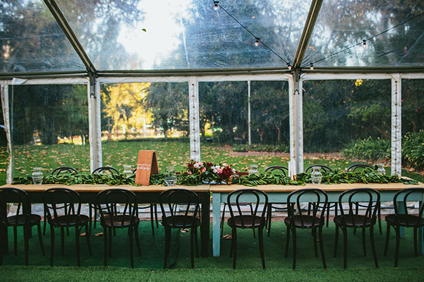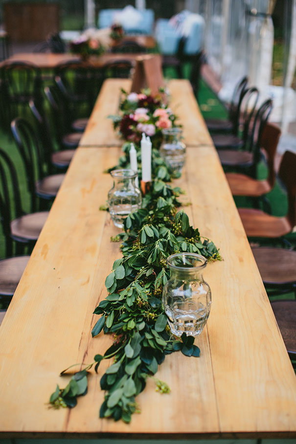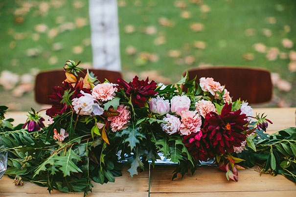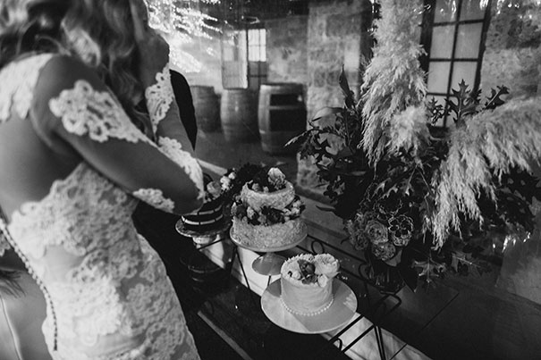 “Being at the end of April, the weather was a bit cooler which at first concerned us but ended up really helping to influence our theme. Our florals were beautiful deep berry shades combined with greenery and we had dark wood furniture mixed in with the most amazing mint green couches. It all just worked really well to create a formal and chic looking wedding without feeling traditional or stuffy,” explains Kayla, who credits The Butcher, The Baker, The Stylist & Creator as being the brains behind the day’s rad styling.