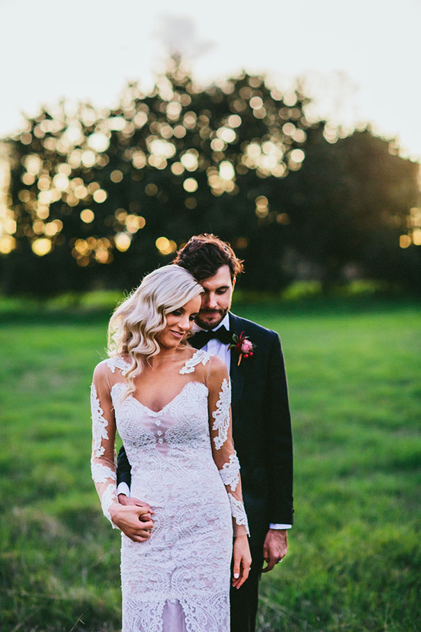 Having been together nearly eight years (a whopping 2,890 days!) before locking things down, it’s no wonder that Kayla and Ben (first featured in issue 15)had a clear vision of their hopes in life, in love and on their special day. “We knew right from the beginning that we wanted our wedding to be under the stars as we love the ambience an outdoor wedding creates. For us, atmosphere, amazing food and drinks and a lively dance floor are what make an unforgettable wedding reception,” says the bride, describing the celebration as “contemporary luxe with a romantic vibe”.