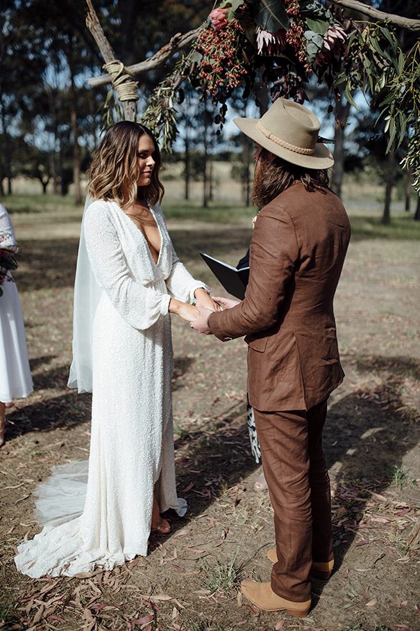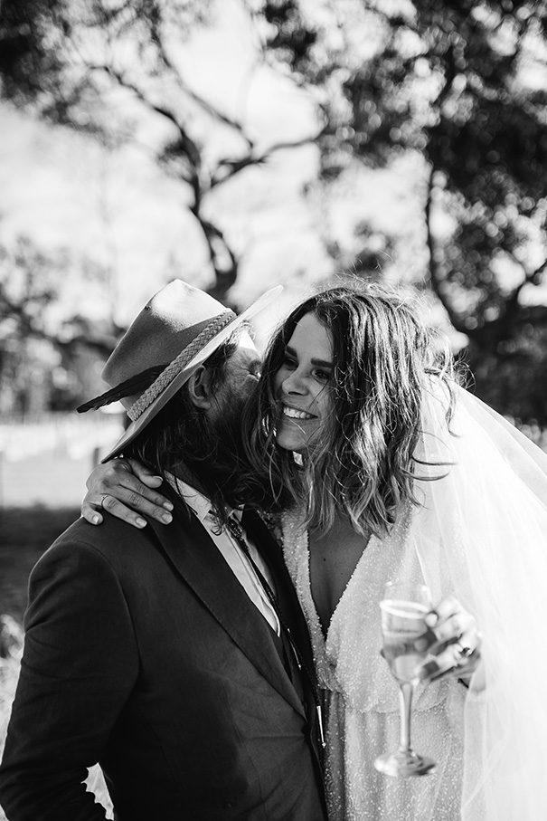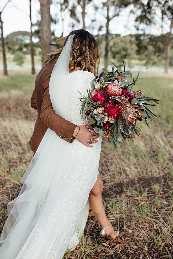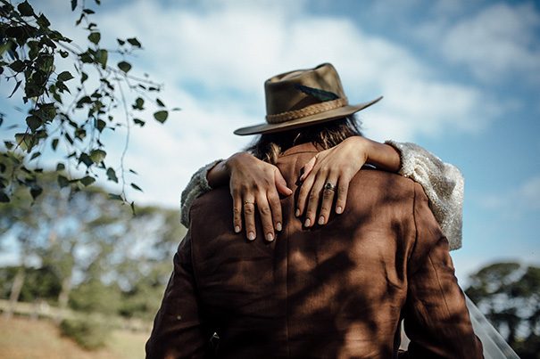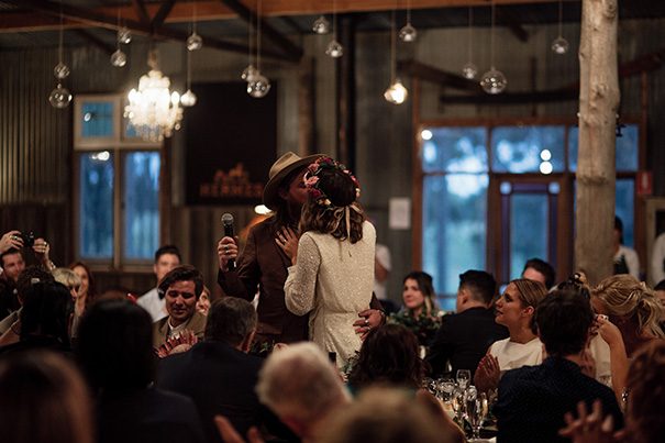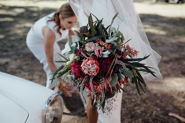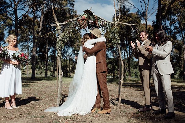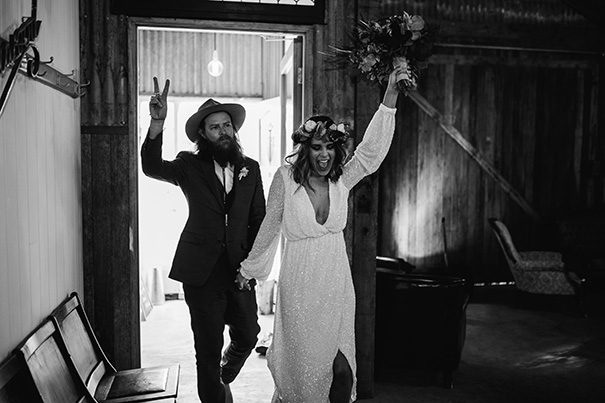 Fast forward 10 years later, Kelly and Mark decided to make things official at The Barn in Geelong with a £rustic, romantic and relaxed vibe in mind and Jai, the lensman behind Free The Bird Weddings, was there to capture the good times. £We were really particular about finding the right photographer for us, we absolutely didn’t want anything too posed or generic/bridal. Jai’s images are so moody, natural and beautiful; we just knew he was right for us – especially after meeting him before the wedding and getting to know him. He’s just so lovely and so easy to be around, it was like having one of our mates shoot our wedding. We adored having him there, says the couple, who surely didn’t skimp on the whole do it yourself’ thing.