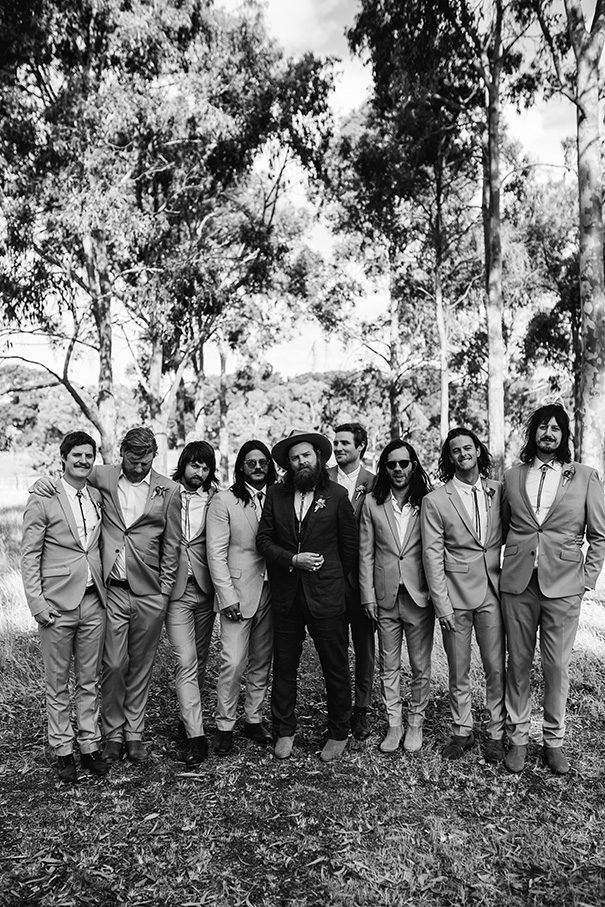 CREDITS Photographer Free The Bird Weddings // Florist Fowlers Flowers // Stationery Cody Comrie // Ceremony and Reception Venue The Barn, VIC // Caterer Annie’s Kitchen // Cake Sticky Fingers Bakery // Entertainment Geelong Entertainment // Celebrant Di O’Brien // Rings Welfe // Bridal Gown Designer and Boutique One Day Bridal // Lingerie Agent Provocateur and Aimee Cherie Intimates // Shoes Stuart Weitzman // Hair and makeup Belinda Zollo // Bridesmaid Dresses Thurley, Maticevski, Spell Byron Bay, Grace Loves Lace, Isla, Christopher Esber and Camilla and Marc // Bridesmaid Shoes Tony Bianco // Groom’s Suit Jack London // Pants P. Johnson Tailors // Shoes Everyday Hero // Socks Bon Folk // Groomsmen Suit Top Man, Hallenstiens and David Jones // Groomsmen Gift Jamieson.