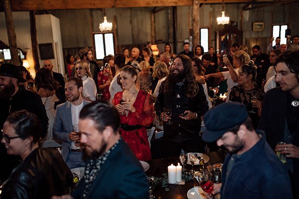 £Celebrating with all of our dearest friends and family was a highlight. During the ceremony looking out at our families and everyone that makes our life and relationship as rich as it is was definitely something extremely special. At the reception there was so much love floating around. Everyone was hugging, kissing, laughing and crying all evening. The party was just as much a celebration of everyone there and how much we love one another, these lovebirds happily remember, reminding those soon leaping into marriage not to get swept into what you think a wedding should be’.