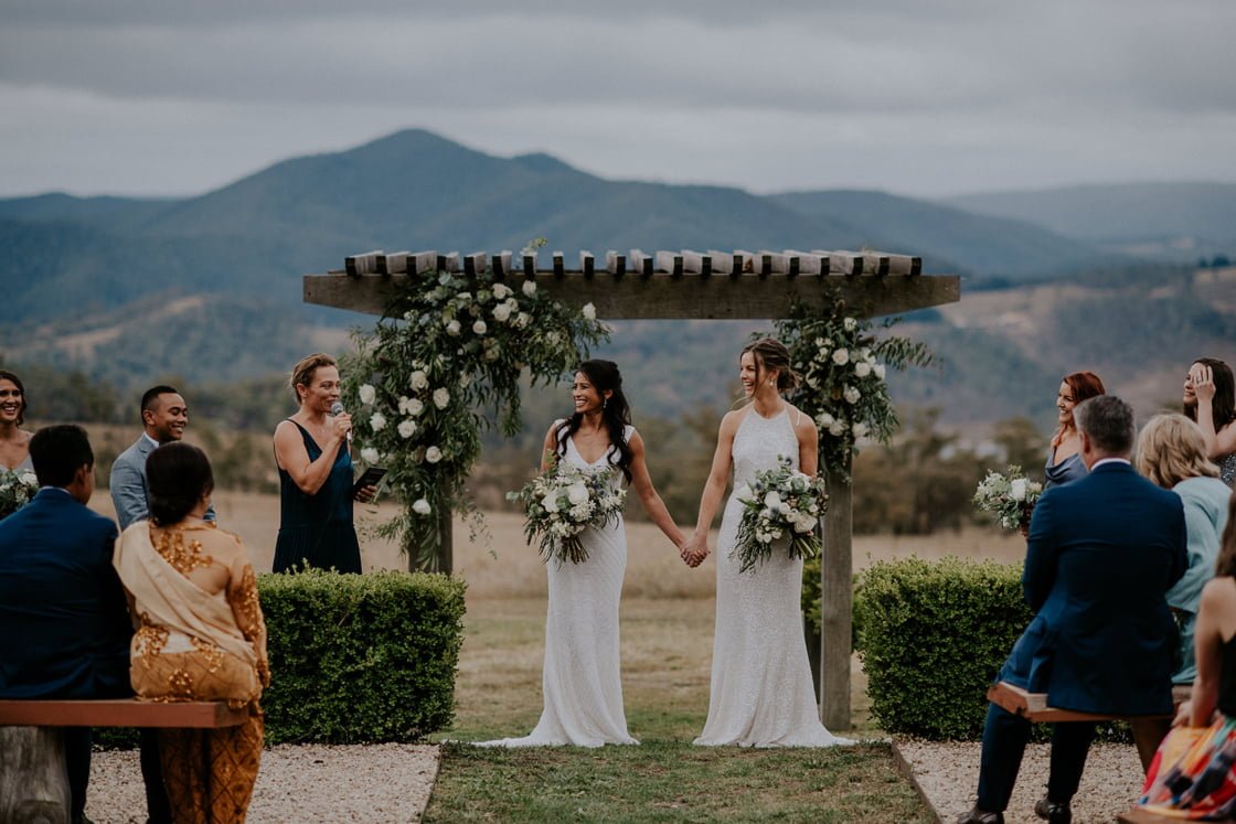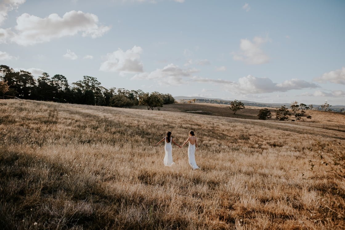 These two sweet ladies have us smitten, friends, and we are unbelievably pleased to be sharing this divine day with you. You can practically feel the warmth of Kirsten and Cherie’s love through these candid snaps. The fact that both lovely brides were donning Karen Willis Holmes is just one of the many reasons we adore this loved up duo. A few of our faves were in attendance helping pull it all off. Cara of Modern Love Ceremonies took care of the official stuff whilst CloudHerd Film Co. was capturing footage. As for the sweet snaps? Courtesy of our office bud and brewery companion, Scott Surplice Photography. Scroll down to take a peep at his handiwork…