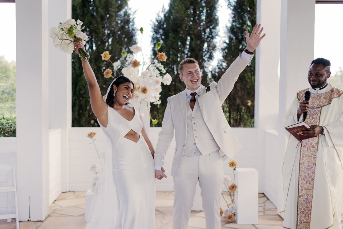 They may have whipped it all up in under a month but, dang, they did a great job of it! From the big details (ahem, gorg snaps by Florido Photography & Videography) to the small (we see you, Rue De Seine getting-ready robe!) and the downright unforgettable (that Prea James Bridal oh em gosh), every piece of this big day was on point.