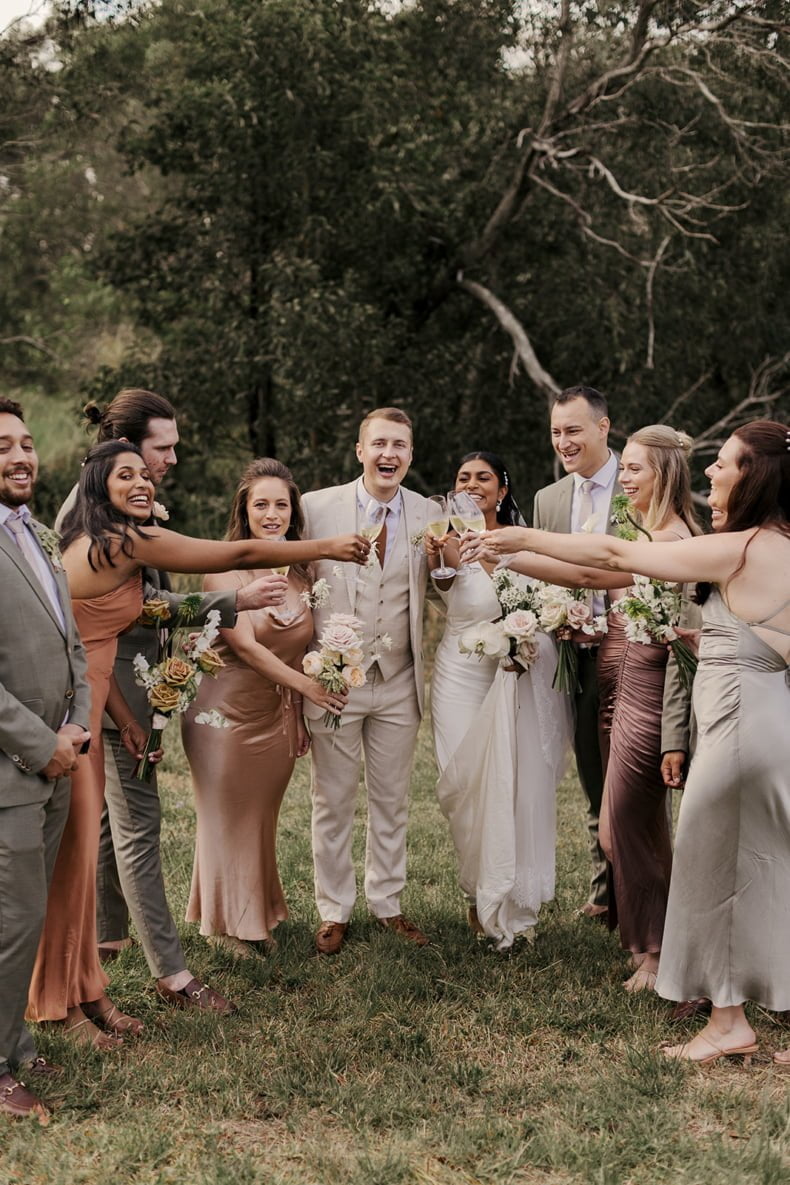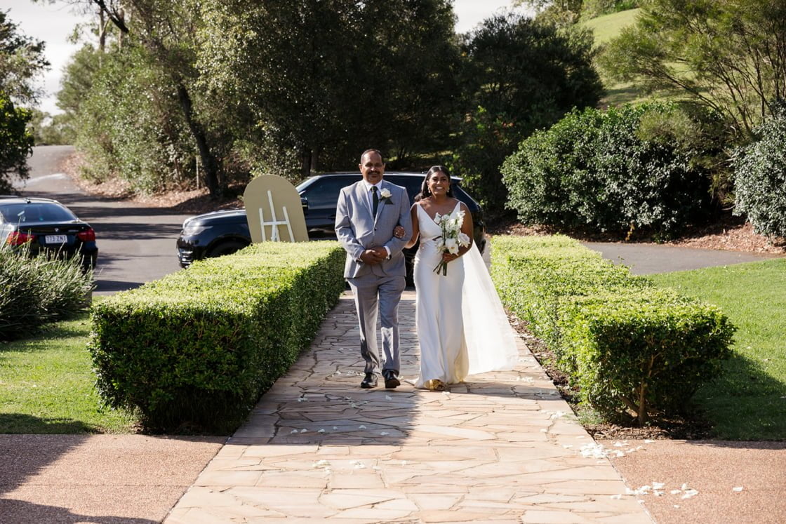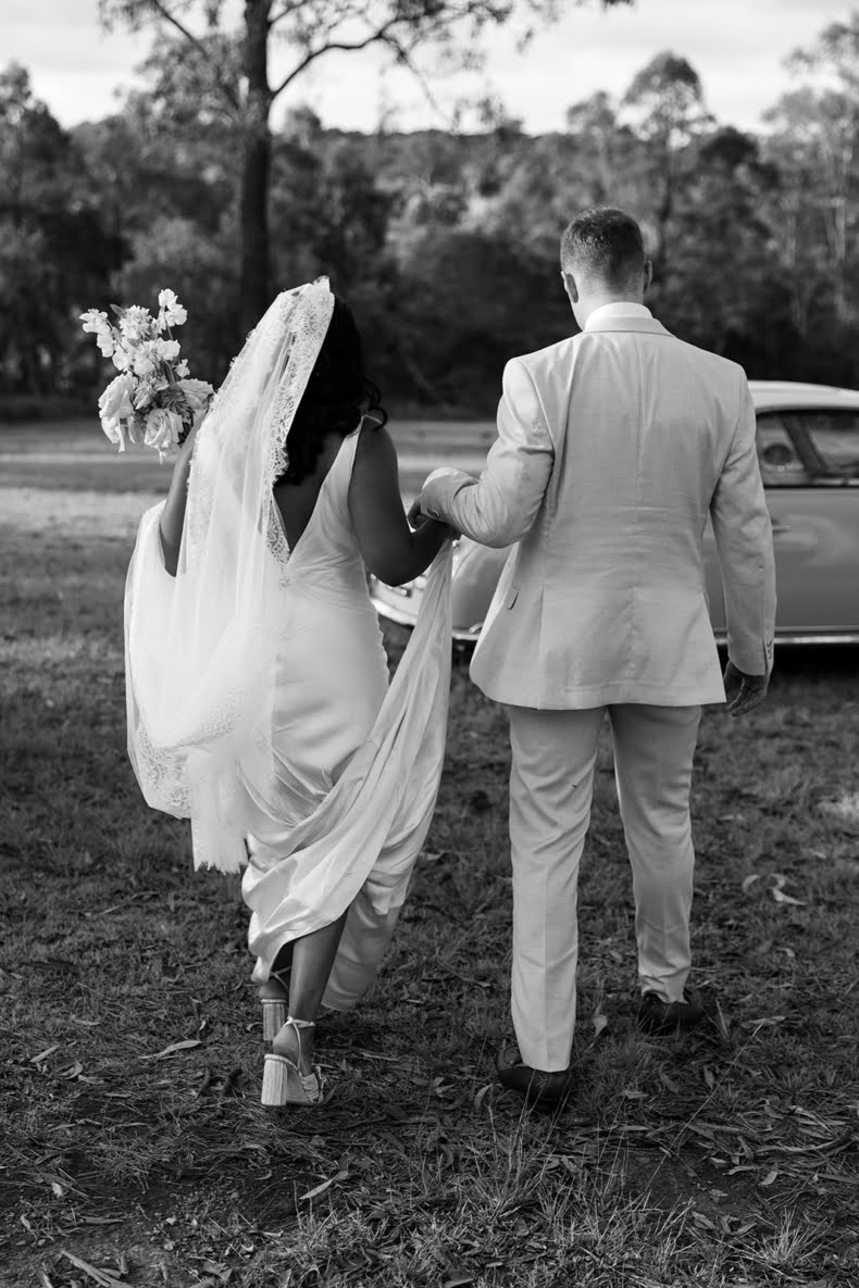 CONTRIBUTING VENDORS Photographer Florido Photography & Videography Styling Julie Vine Flowers (execution) Florist Bloodwood Botanica Stationery Sirromet Wines Ceremony, Reception & Catering Sirromet Wines Food Trucks Wheel & Spoon Gelato Bike Wedding favours Honey (family friend’s organic beehives), Care You (jars) Entertainment The Fonoti Brothers via McGee Entertainment Rings CTJ Gold Coast Transport Hampton Motors THE BRIDE Gown Prea James Bridal Bridal Boutique Sphere Bridal Gallery Veil KYHA Studios Hairpiece Lovisa Robes Rue De Seine (bride), Le Rose Shoes Loeffler Randall via Revolve Earrings Natasha Schweitzer Hair & Makeup KM Makeup Studios Fragrance Givenchy Dahlia Divin Eau De Parfum Bridesmaid dresses Shona Joy Bridesmaid shoes Nine West THE GROOM Suit, Vest, Shirt, Tie & Shoes Politix Cufflinks Hugo Boss Watch Seven Friday Barber HQ Male Grooming Groomsmen suits Politix