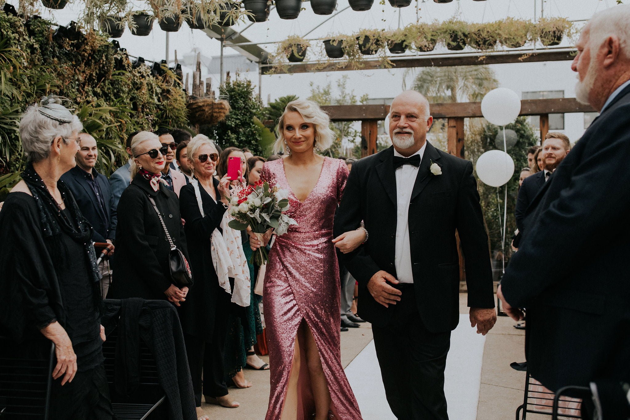 FAVOURITE MOMENT “My favourite moment was dancing with Luke alone on the rooftop car park, in the middle of Melbourne CBD, and just taking in the moment, realising we really did it, we just got married. We were running so terribly late for the reception but we didn’t care.”