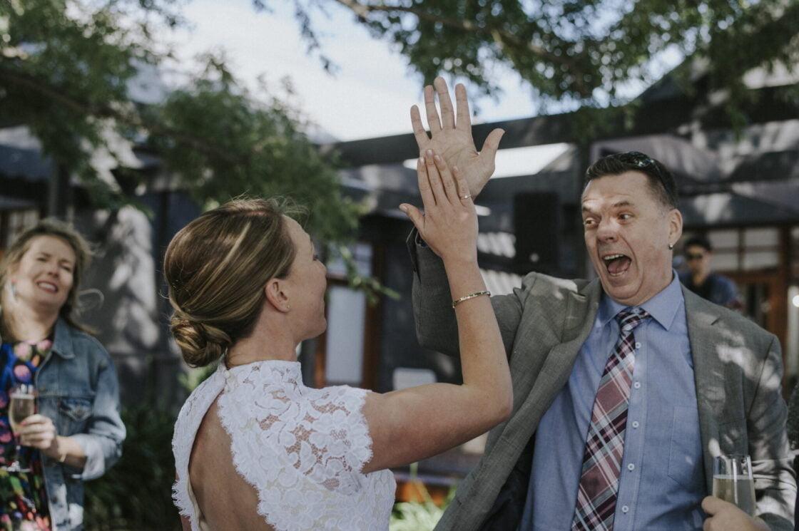 WE’RE GLAD WE… “Got ready at home, surrounded by our sisters and mothers. It was such a relaxing way to ease into the day. Our immediate family then turned up and we had a low-key reveal, while sipping on champagne. Also, we gave a few people a chance to speak (both sets of parents, both sets of siblings, and ourselves) and we limited their time accordingly to ensure speeches were not a drawn-out process. The breadth of stories covered added a lot of depth and sentimentality to the day.”