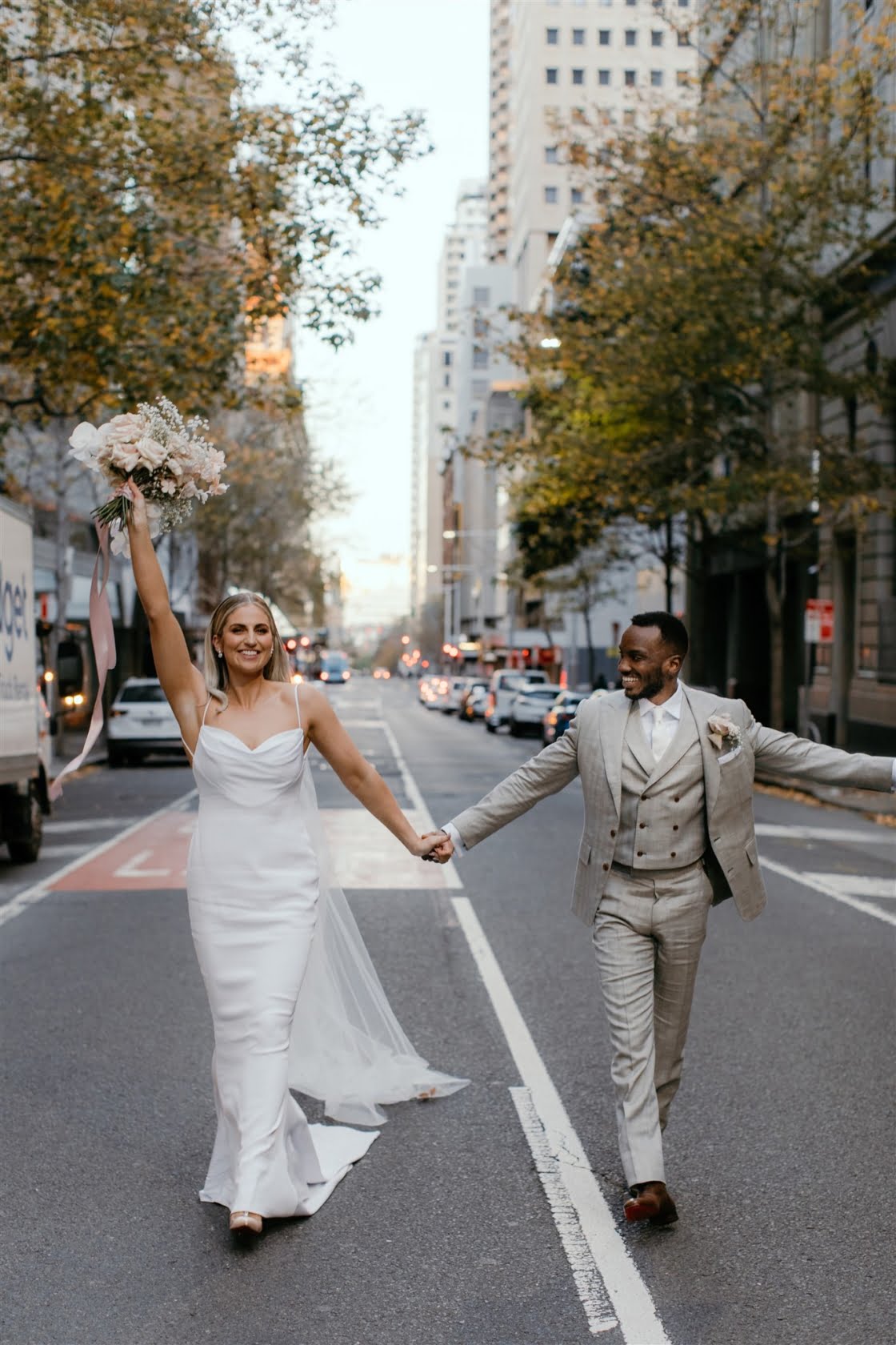 STANDOUT VENDORS “Samantha Heather Photography photographed our elopement and for our renewal, she was heavily pregnant and not able to shoot the wedding. She had organised for a colleague to cover our reception, but she turned up anyway and surprised us for the ceremony and took our photos. That was a lovely surprise and goes to show that she goes above and beyond. I would recommend her to anyone. Lilac, our stylist from Upside Down Events, understood our vision and was incredible, patient and fun to work with. C2 Films were also incredible throughout the planning process and on the day – it felt like Dan was part of our wedding party! He danced and sang with us until the end of the night.”