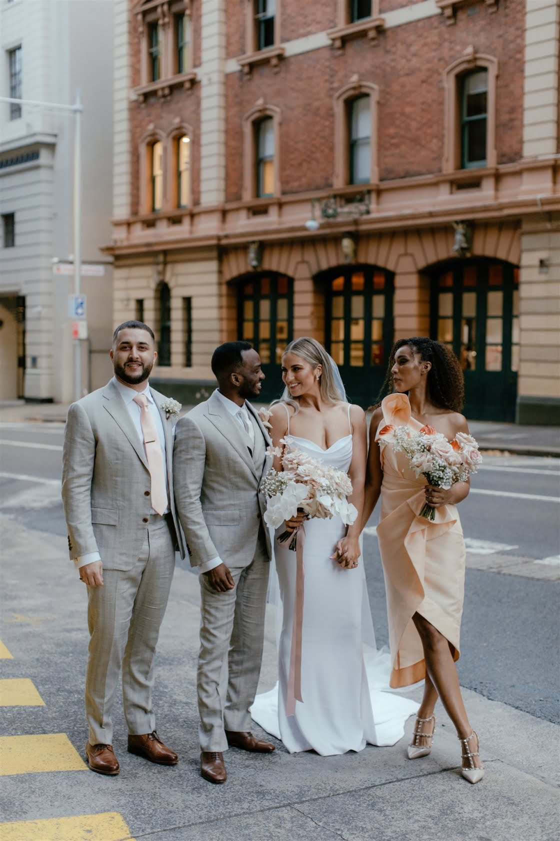 CONTRIBUTING VENDORS Photographer Samantha Heather Photography Cinematographer C2 Films Stylist, Florist, Stationery & Signage Upside Down Events Ceremony, Reception & Catering Beta Entertainment Oberon Lane, DJ Kuda (friend) Rings GS Diamonds Transport Uber Black THE BRIDE Gown Chosen by KYHA Bridal Boutique Love Marie Bridal Boutique Veil Tania Maras (custom) Robes Sant Elia Shoes Christian Louboutin Earrings A.B Ellie Hair & Makeup Ariela Dundović Bridesmaid dresses Acler Bridesmaid shoes Valentino Bridesmaid gifts Sarah & Sebastian THE GROOM Suit Zimma Tailors Shirt & Bow tie David Jones Shoes Christian Louboutin Watch Skagen Barber The Men’s Grooming Groomsmen suits Zimma Tailors