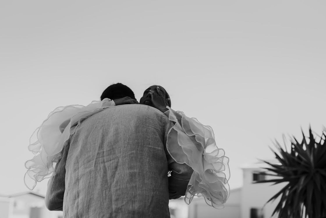 THE INSPO “We took a modern approach to our wedding day. We wanted to throw every tradition out the window, do something extremely intimate, and spend the whole day together outside in the sunshine. The vibe was centred around our idea of a perfect day and the feeling you get when you’re on holiday – you’ve spent the whole day in the sun, you come home in the early evening, you shower, and you feel so calm, happy, clean and beautiful. When we were getting ready for our evening ceremony, this is exactly how we felt.”