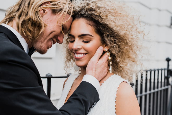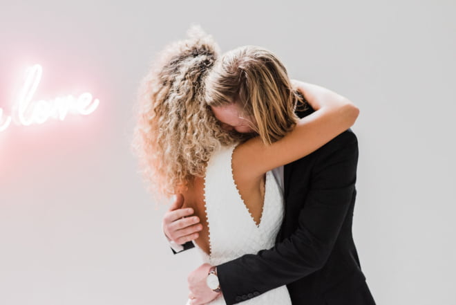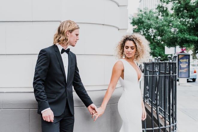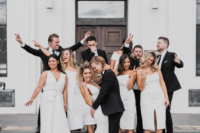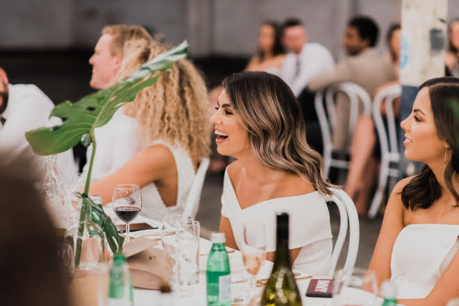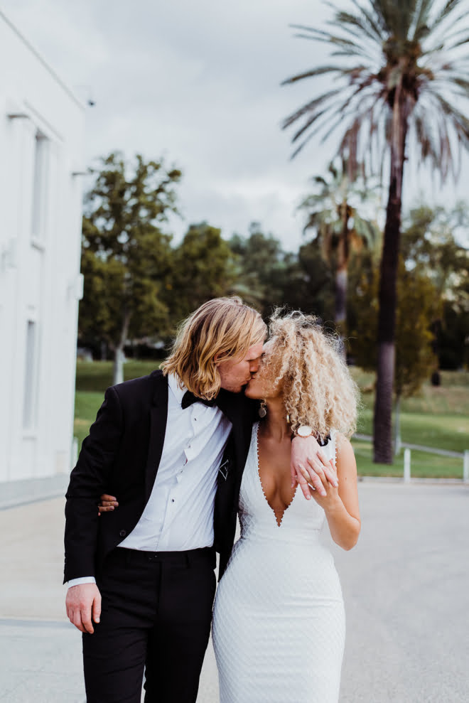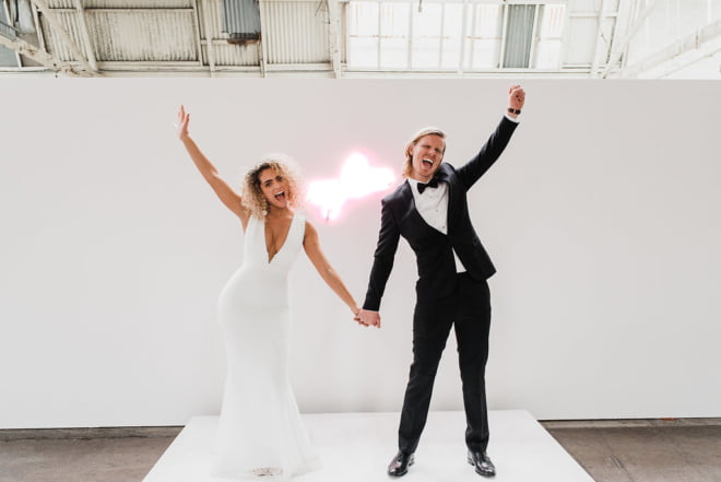 With her glorious hair and bangin’ bod, it’s hard not to notice this gorgeous bride, who doubles as a fashion designer of Aussie brand, Stone and DIY’d “basically everything,” including that dress. “I individually sewed more than 400 beads onto it in the early hours of the mornings,” reveals the bride. Laura and her musician love married in a Palm Springs-themed wedding, lensed by Goldlight Photography and had such a ball that the police had to shut it down! “The neighbours couldn’t handle all that Drake and Cardi B!” Scroll down to see it all for yourself and don’t miss Laura’s solid words of advice.