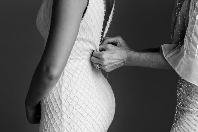 THE DRESS Being a fashion designer, I had a very clear idea of what I wanted. I am a true minimalist, so I knew it had to be simple and timeless with a bit of me thrown in. I found the diamond-beaded mesh fabric on a trip one year ago and I just knew it was the one.