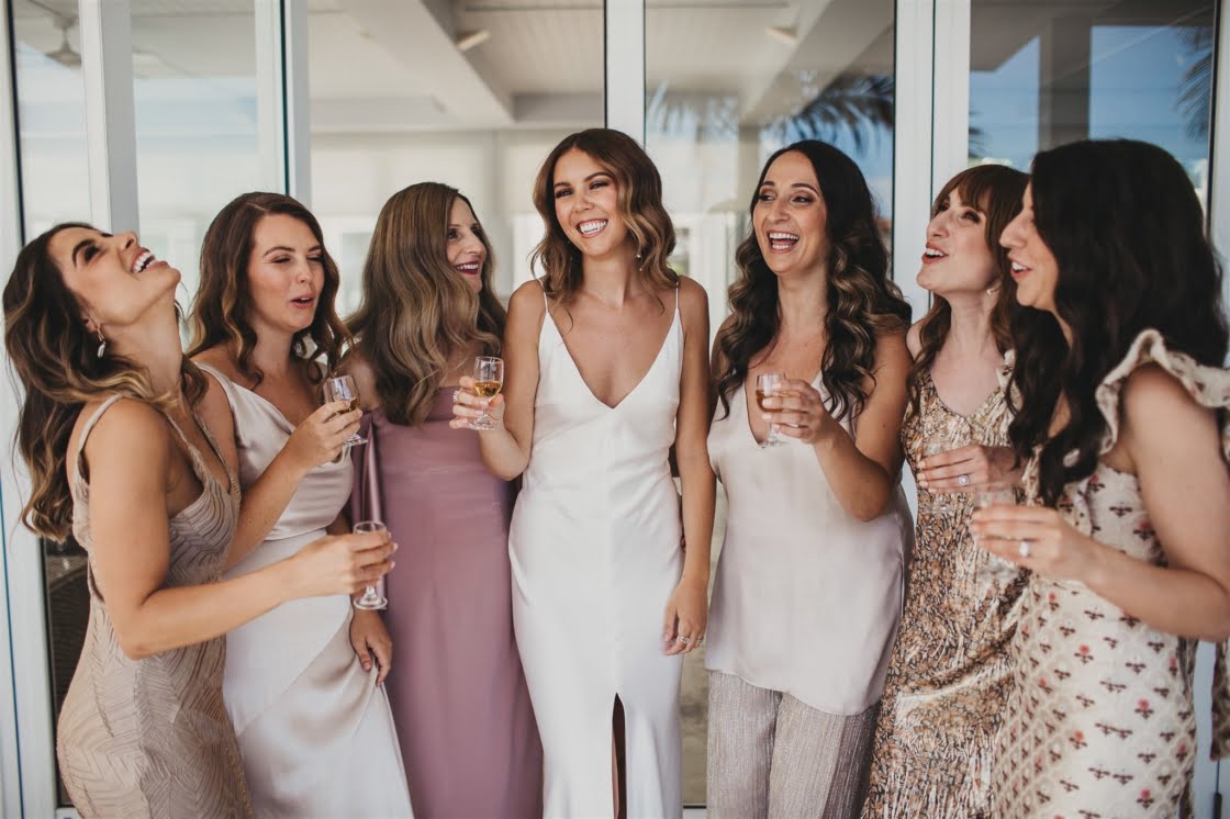 These lovers have been together for ten cruisey years and tied the knot in sunny Noosa. Jordan proposed to his leading lady in the middle of pre-game drinks for the couples much loved Adelaide Crows. Pink-cheeked, Laura opened a series of boxes until she was surprised with a trip to Noosa. The final box contained the piece de resistance. Cheered on by fellow fans, the duo celebrated until the early hours of the morn. Idyllic, huh? Well, wait until you get a load of their pristine wedding party and the brides gorge gown that she nabbed from Sphere Collective. Scroll down for Shane Shepherd Photography’s super snaps…
