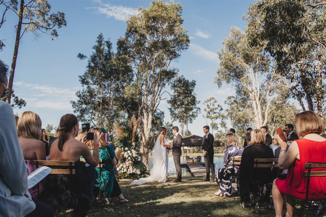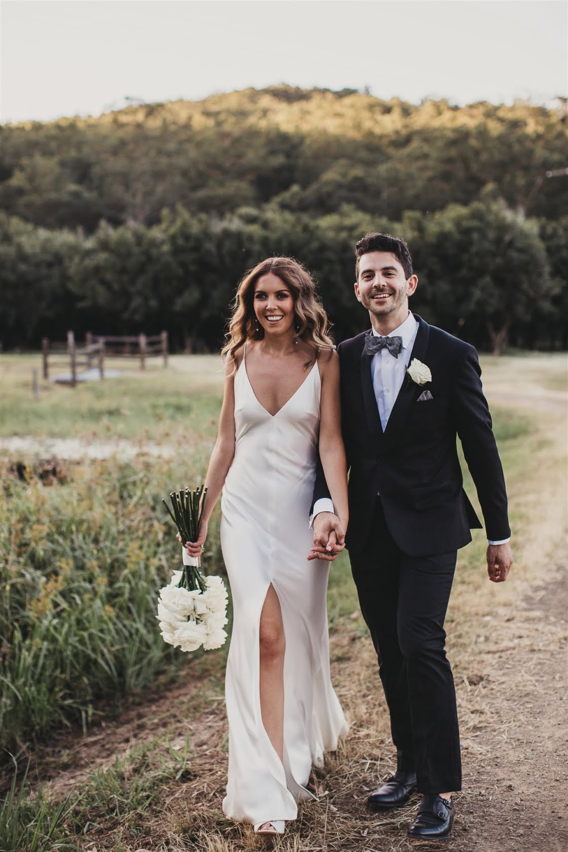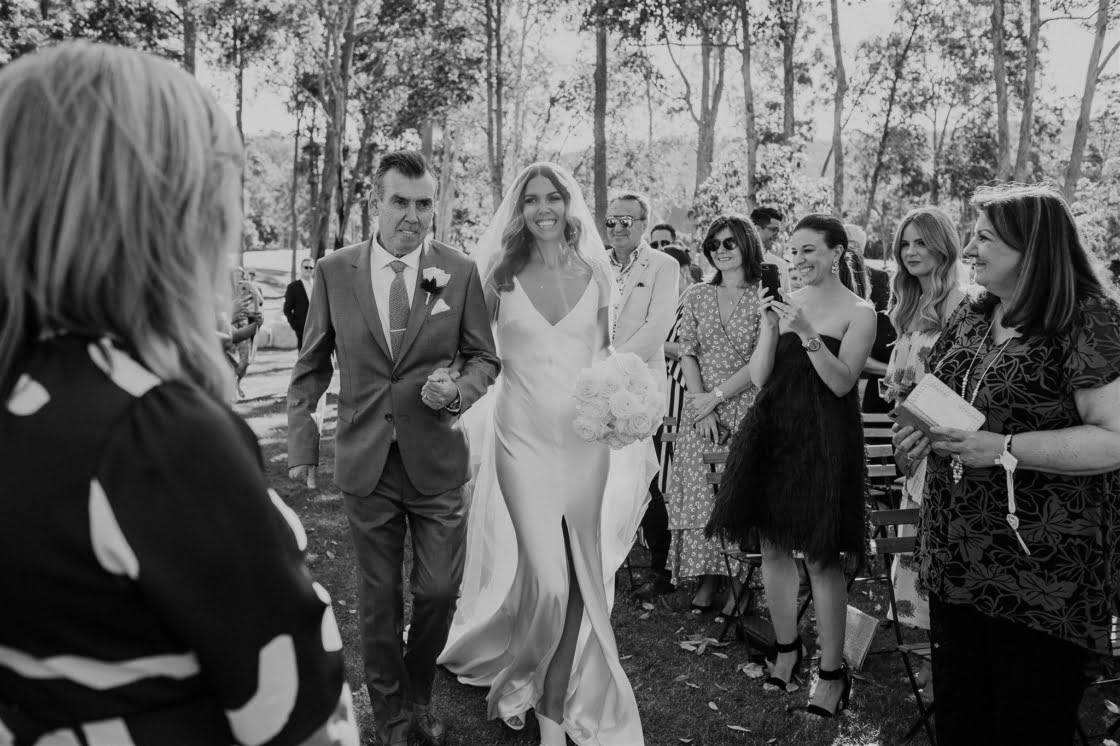 CONTRIBUTING VENDORS Photographer Shane Shepherd Photography Cinematographer Clash Studio Event Planner & Stylist Lovebird Weddings Florist Mondo Floral Designs Stationery Minted, Paper and Nirvana Venue Private Property Catering & Cake Spoon Fed Catering Wedding Favours Quinzi, Koch, Oshc Craft Kits Hire Items Noosa Party Hire, Lovebird Weddings Marquee & Lighting Hire Sperry Tents Sunshine Coast Signage AOOS Entertainment Andrew Redford, Hamilton Band Priest Father Mark Franklin Rings Keshett, Argenta Jewellery Transport Hinter-Coast Transport BRIDE Dress Chosen by One Day Bridal via Sphere Collective Loungewear Spell & The Gypsy Collective Shoes Salvatore Ferragamo Earrings Natasha Schweitzer Hair Sequel by Parlour Makeup Shannon Jennings Makeup and Karina Partynski Bridesmaid Dresses Bec + Bridge, We Are Kindred, The Line by K and Love Shack Fancy Bridesmaid Shoes Billini GROOM Jacket & Pants Jack London Shirt MJ Bale Cufflinks InStitchu Bow Tie OTAA Shoes Aquila Groomsmen Suits ASOS