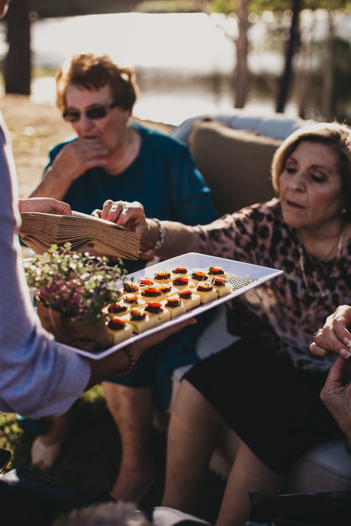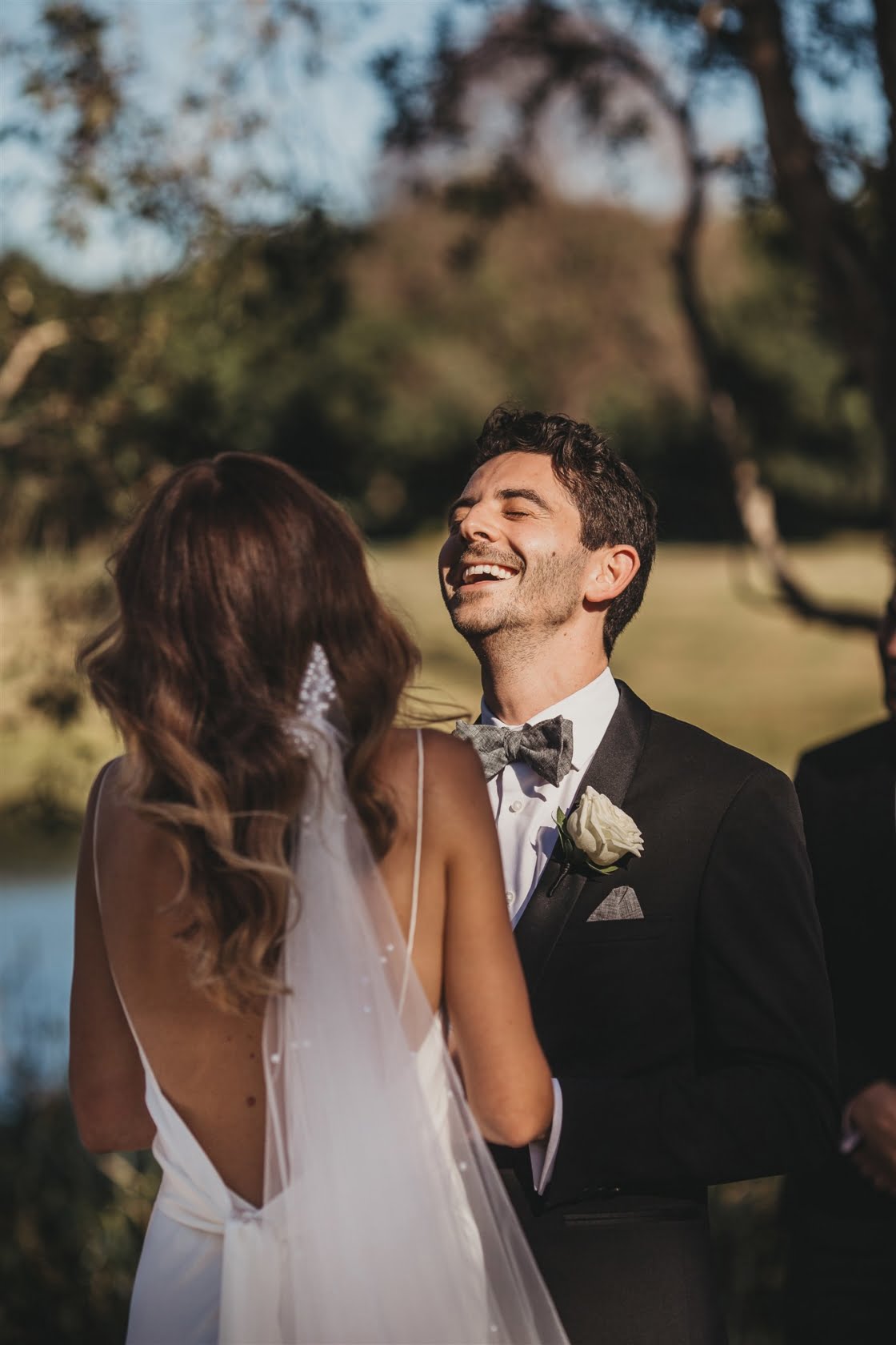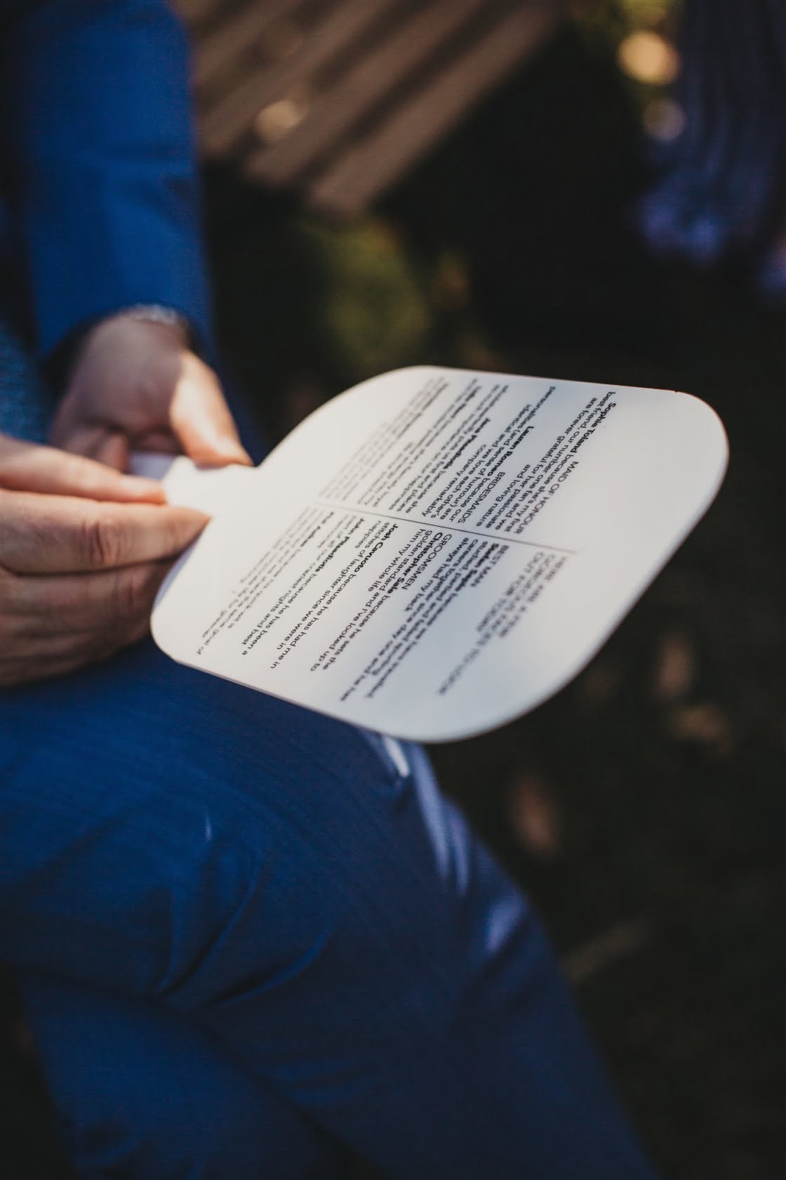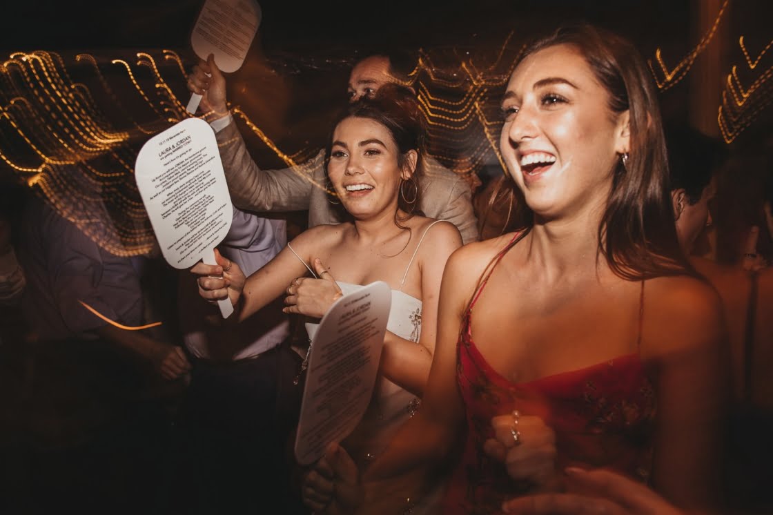 FAVOURITE DETAILS “One of our favourite details was our order of ceremony fans created by our dear friend at Paper and Nirvana. The order of ceremony was printed on an acrylic paddle which doubled as a fan to keep guests cool if they needed. One side was a quirky narrative of how the ceremony would play out and the other side was a dedication to our awesome bridal party with a few words explaining why each of them was so special to us.”