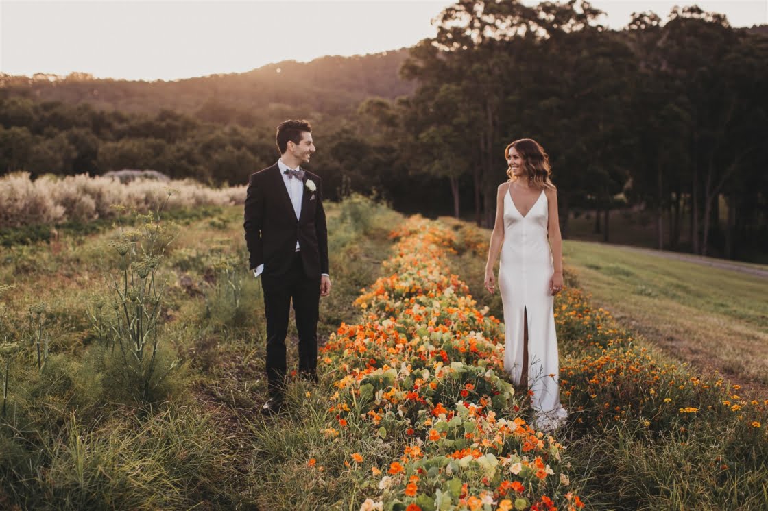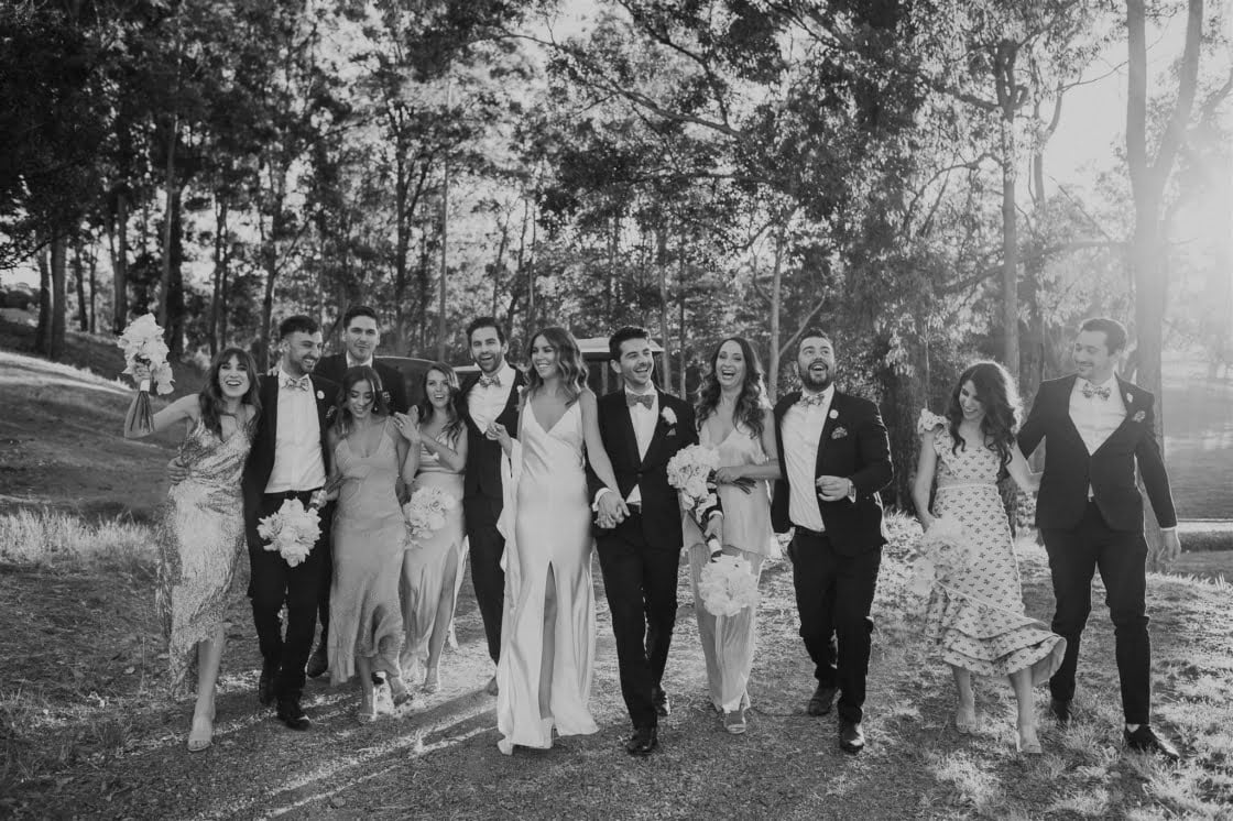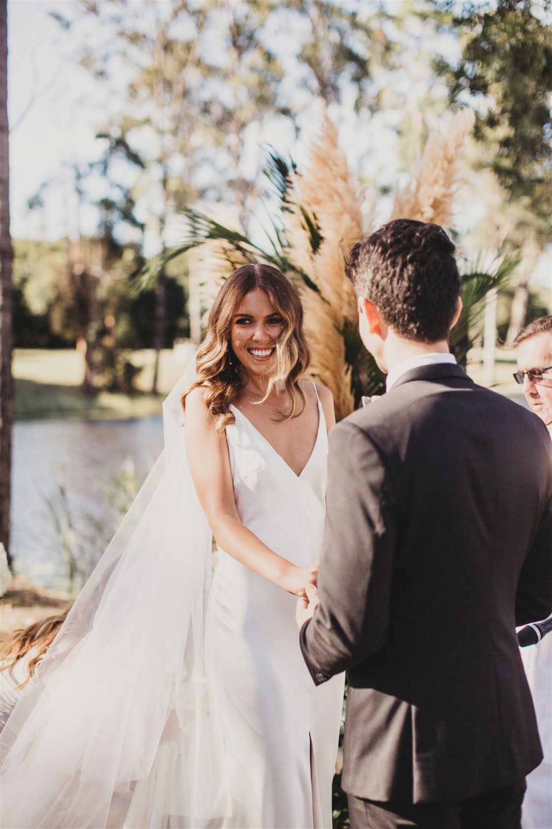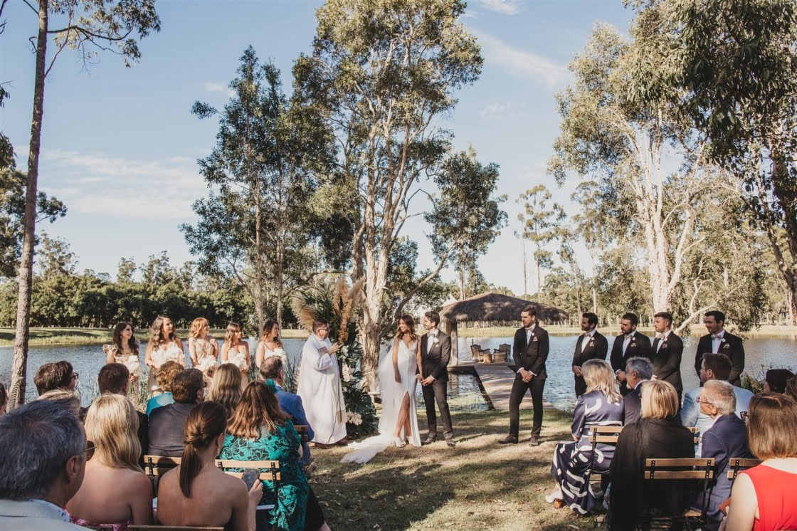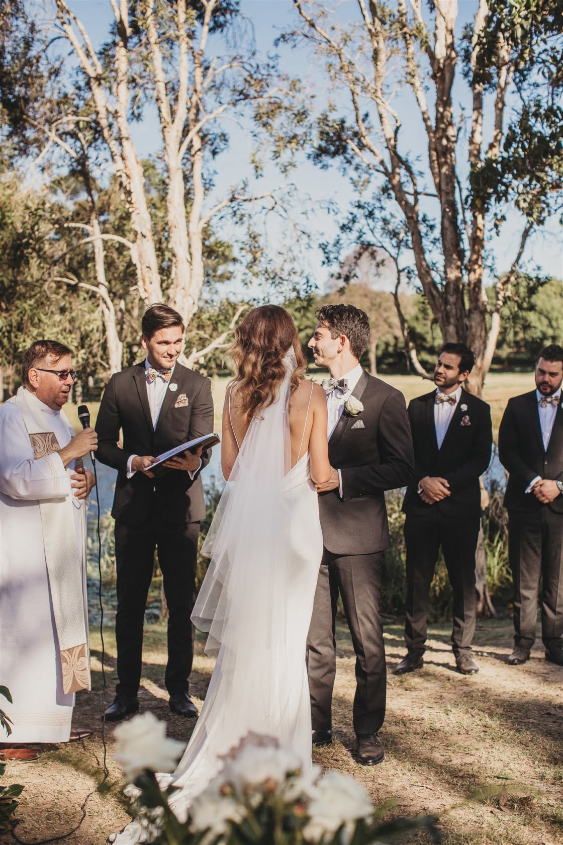 CONTRIBUTING VENDORS Photographer Shane Shepherd Photography Cinematographer Clash Studio Event Planner & Stylist Lovebird Weddings Florist Mondo Floral Designs Stationery Minted, Paper and Nirvana Venue Private Property Catering & Cake Spoon Fed Catering Wedding Favours Quinzi, Koch, Oshc Craft Kits Hire Items Noosa Party Hire, Lovebird Weddings Marquee & Lighting Hire Sperry Tents Sunshine Coast Signage AOOS Entertainment Andrew Redford, Hamilton Band Priest Father Mark Franklin Rings Keshett, Argenta Jewellery Transport Hinter-Coast Transport BRIDE Dress Chosen by One Day Bridal via Sphere Collective Loungewear Spell & The Gypsy Collective Shoes Salvatore Ferragamo Earrings Natasha Schweitzer Hair Sequel by Parlour Makeup Shannon Jennings Makeup and Karina Partynski Bridesmaid Dresses Bec + Bridge, We Are Kindred, The Line by K and Love Shack Fancy Bridesmaid Shoes Billini GROOM Jacket & Pants Jack London Shirt MJ Bale Cufflinks InStitchu Bow Tie OTAA Shoes Aquila Groomsmen Suits ASOS