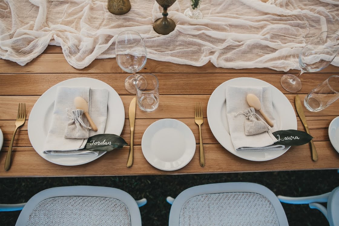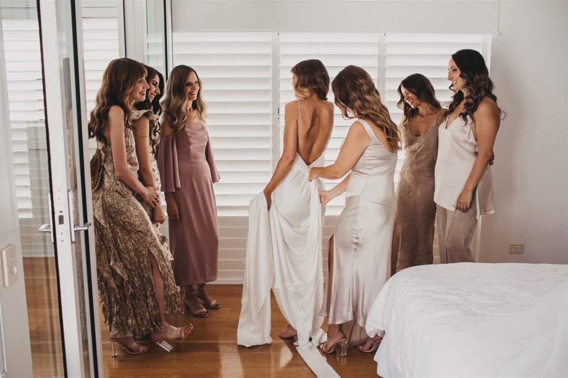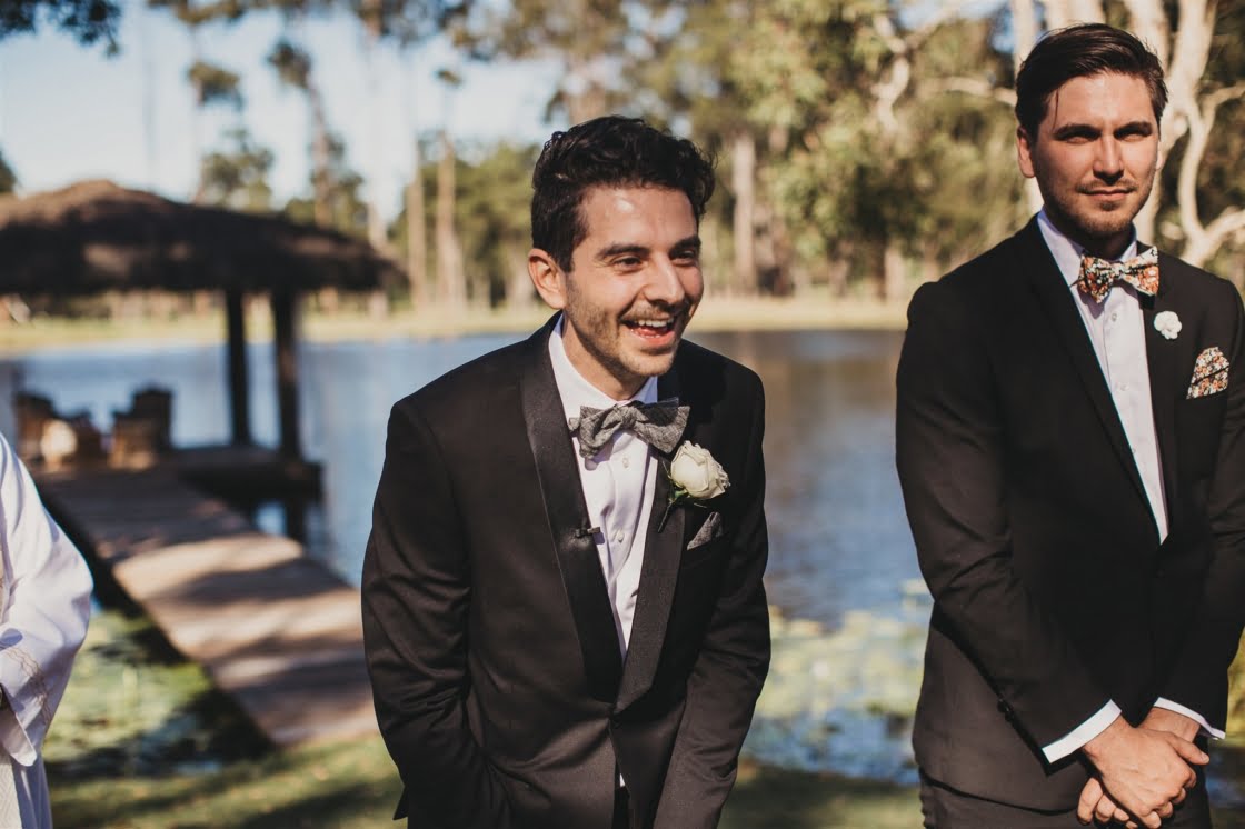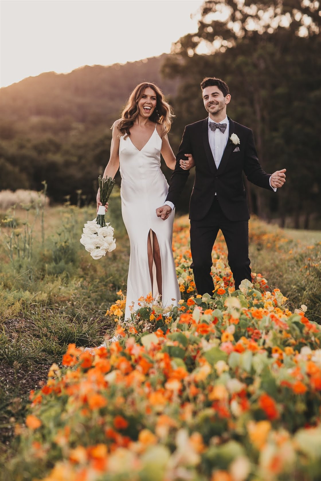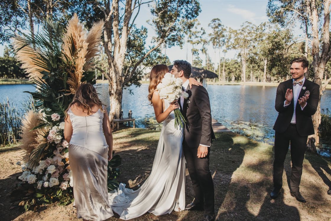 CONTRIBUTING VENDORS Photographer Shane Shepherd Photography Cinematographer Clash Studio Event Planner & Stylist Lovebird Weddings Florist Mondo Floral Designs Stationery Minted, Paper and Nirvana Venue Private Property Catering & Cake Spoon Fed Catering Wedding Favours Quinzi, Koch, Oshc Craft Kits Hire Items Noosa Party Hire, Lovebird Weddings Marquee & Lighting Hire Sperry Tents Sunshine Coast Signage AOOS Entertainment Andrew Redford, Hamilton Band Priest Father Mark Franklin Rings Keshett, Argenta Jewellery Transport Hinter-Coast Transport BRIDE Dress Chosen by One Day Bridal via Sphere Collective Loungewear Spell & The Gypsy Collective Shoes Salvatore Ferragamo Earrings Natasha Schweitzer Hair Sequel by Parlour Makeup Shannon Jennings Makeup and Karina Partynski Bridesmaid Dresses Bec + Bridge, We Are Kindred, The Line by K and Love Shack Fancy Bridesmaid Shoes Billini GROOM Jacket & Pants Jack London Shirt MJ Bale Cufflinks InStitchu Bow Tie OTAA Shoes Aquila Groomsmen Suits ASOS
