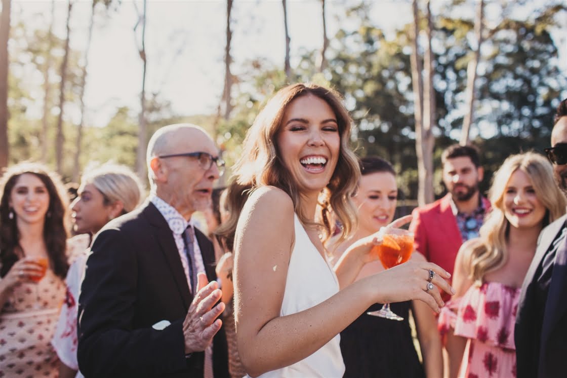 These lovers have been together for ten cruisey years and tied the knot in sunny Noosa. Jordan proposed to his leading lady in the middle of pre-game drinks for the couples much loved Adelaide Crows. Pink-cheeked, Laura opened a series of boxes until she was surprised with a trip to Noosa. The final box contained the piece de resistance. Cheered on by fellow fans, the duo celebrated until the early hours of the morn. Idyllic, huh? Well, wait until you get a load of their pristine wedding party and the brides gorge gown that she nabbed from Sphere Collective. Scroll down for Shane Shepherd Photography’s super snaps…