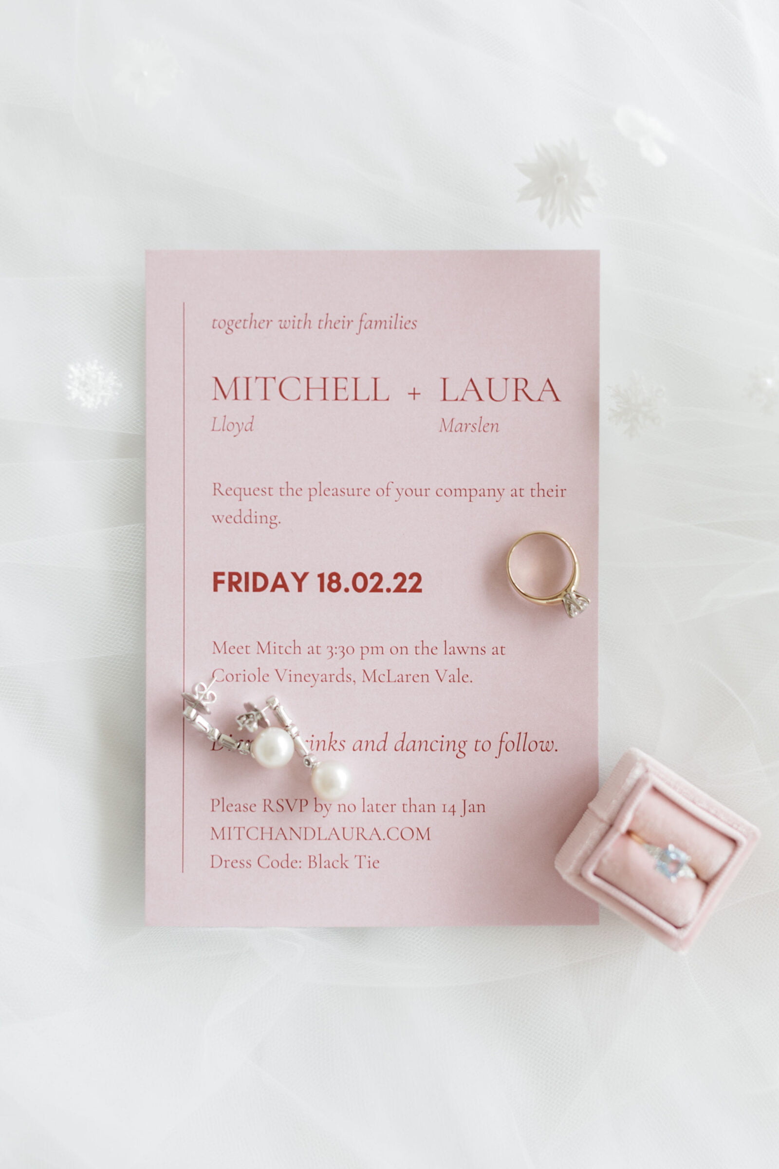 CONTRIBUTING VENDORS Photographer Ali Bailey Cinematographer I Do Cinema Event Planner, Stylist & Stationery Laura Lloyd (bride) Florist Hue Floral Ceremony & Reception venue, Catering Coriole Vineyards Cake The Larder Cheese Woodside Cheese Wrights Hire Items Olympic Party Hire Signage Ovela Designs Entertainment Amicus Strings, Alanah White Celebrant Kendall Francis-Staite Rings Rob Taylor Candles & Vases Basil & Bailey THE BRIDE Bridal Gown Designer & Veil Caleche Bridal Robes The Villa, Piyama Shoes The White Collection Accessories Saphira Diamonds Hair Jenna Iliouu Makeup Lili Karamilikis Bridesmaid outfits Hexie, Bubish Luxe Bridesmaid shoes The Iconic THE GROOM Suit, Shirt, Tie & Shoes Tailors of Distinction Cufflinks Epsilon Jewels Watch Tag Heuer Grooming  Zink Hair Unley  Groomsmen suits Adelaide Suits Direct
