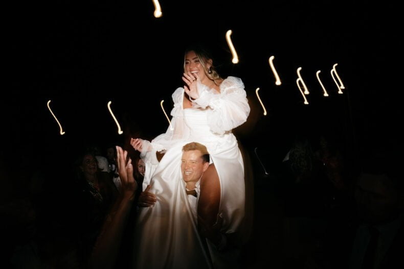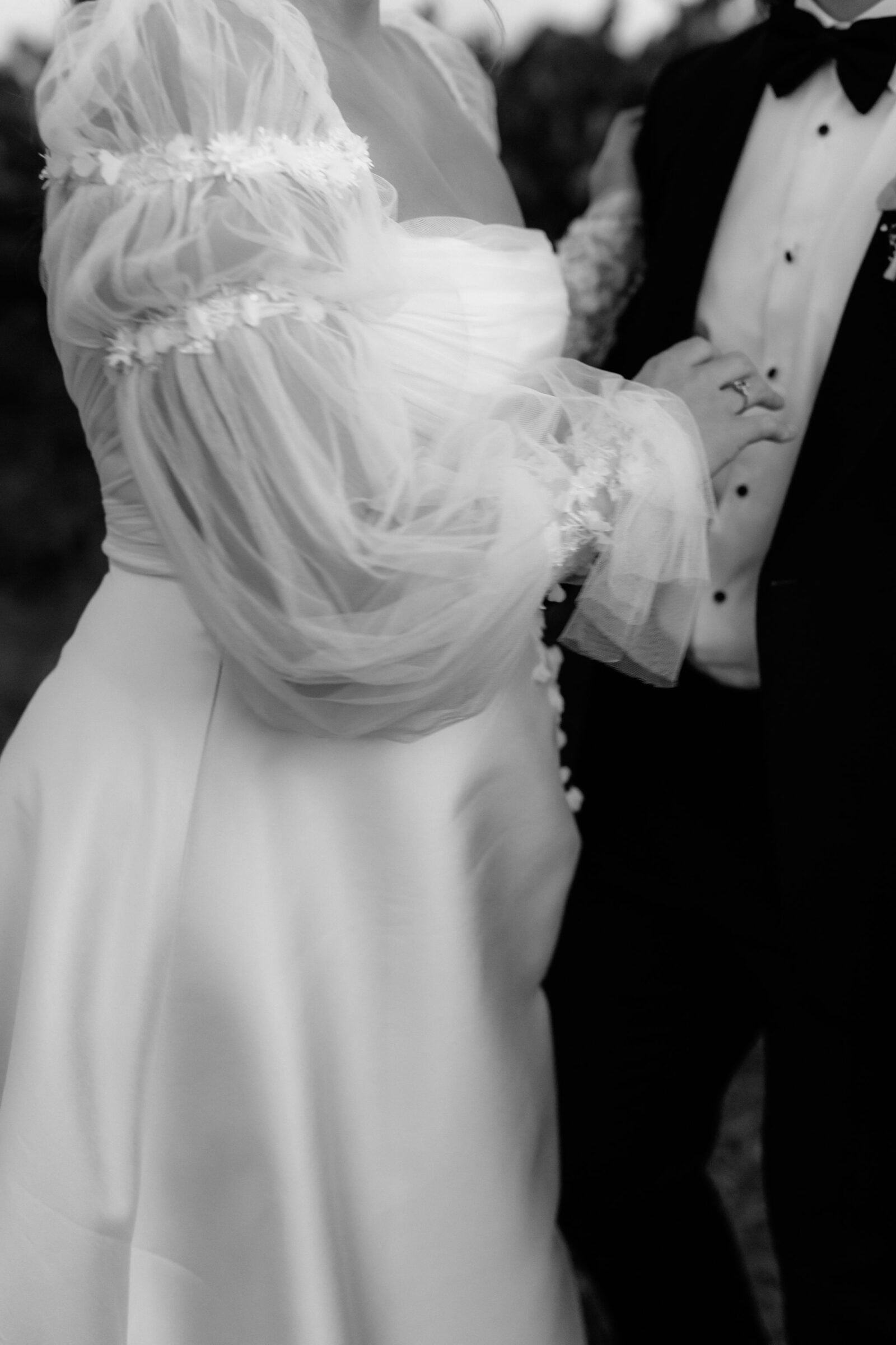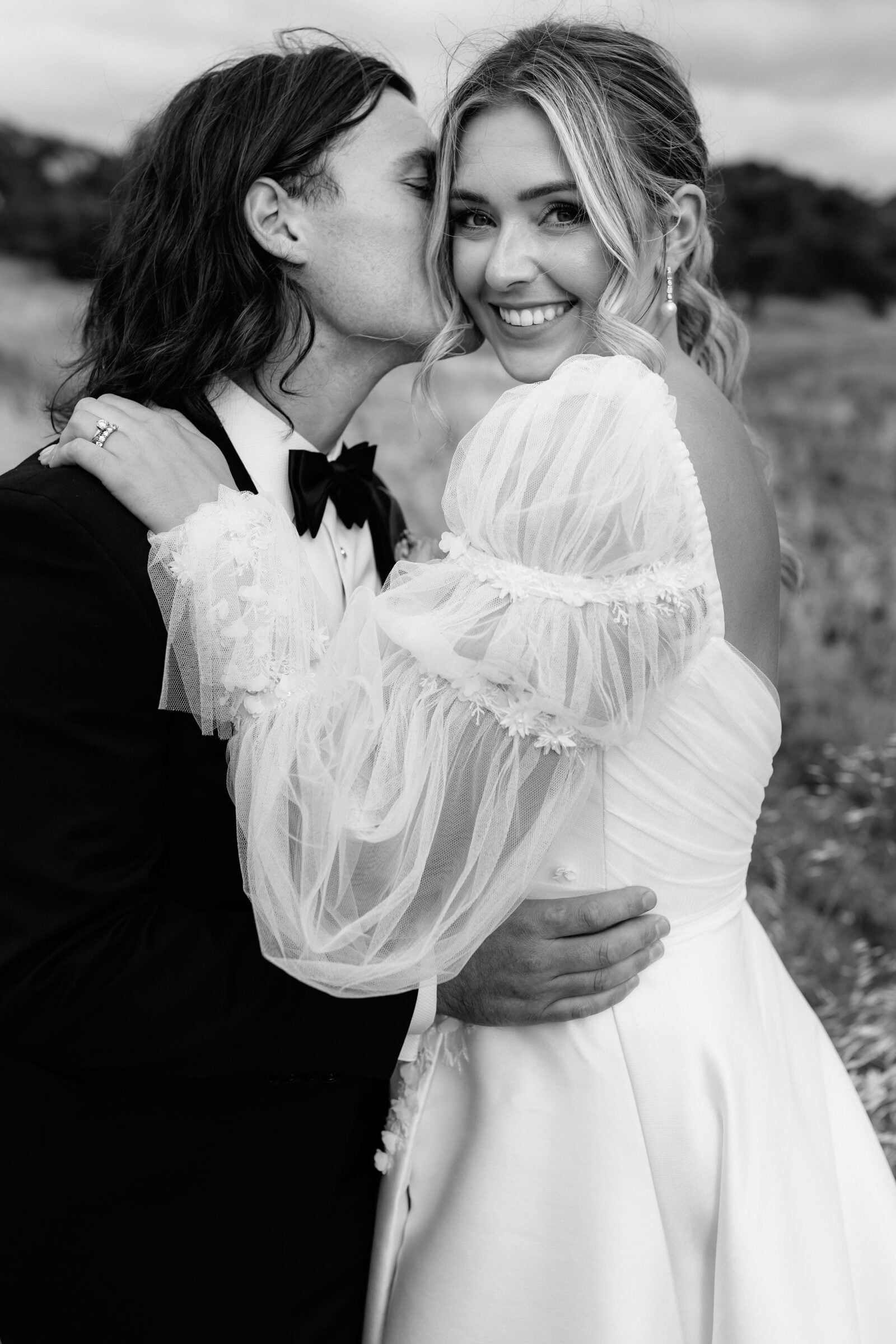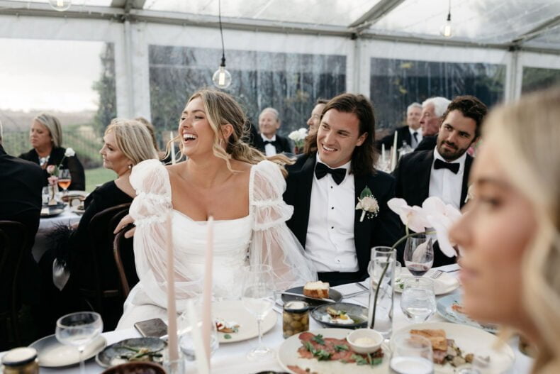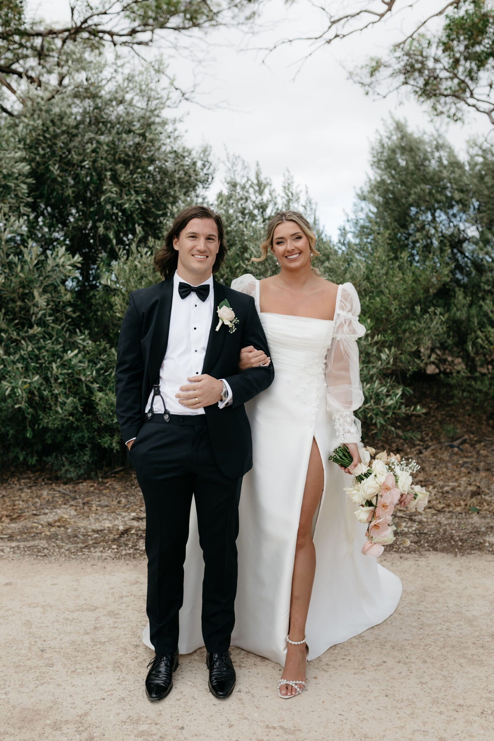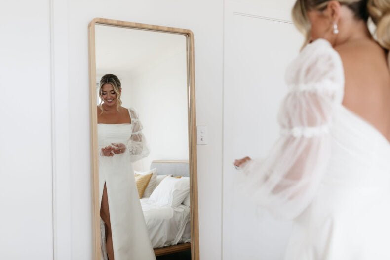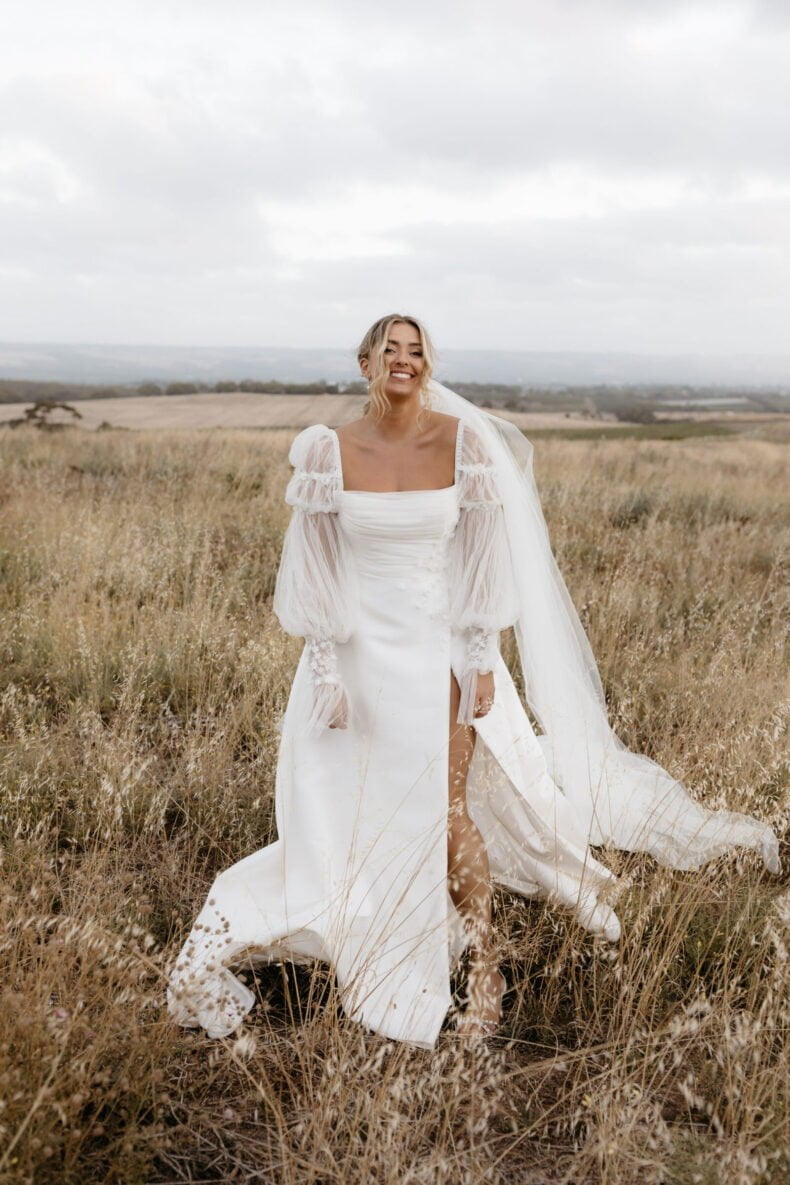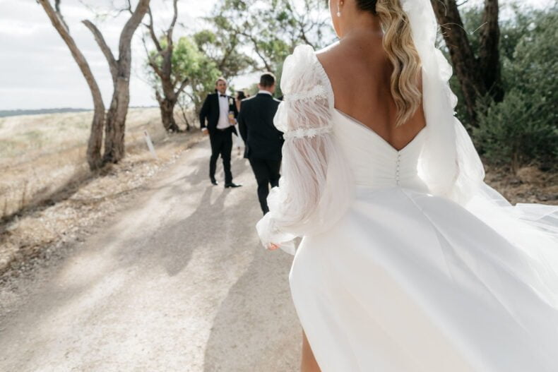 THE DRESS “It was from Caleche in Adelaide. It was custom made and the whole experience from start to finish was fantastic. I knew that what I wanted couldn’t be found on a rack and I would be after something custom and after hearing rave reviews about Caleche from a few close friends they were the first destination I went to once I started looking. I always knew I wanted sleeves to be the hero of the dress and Caleche helped with piecing the rest of the puzzle together and as it evolved we tweaked and finessed things further to bring the vision to life such as the added tulle on the bodice and lace down the skirt to tie in with the sleeves for example.”