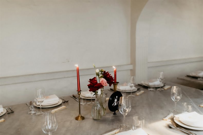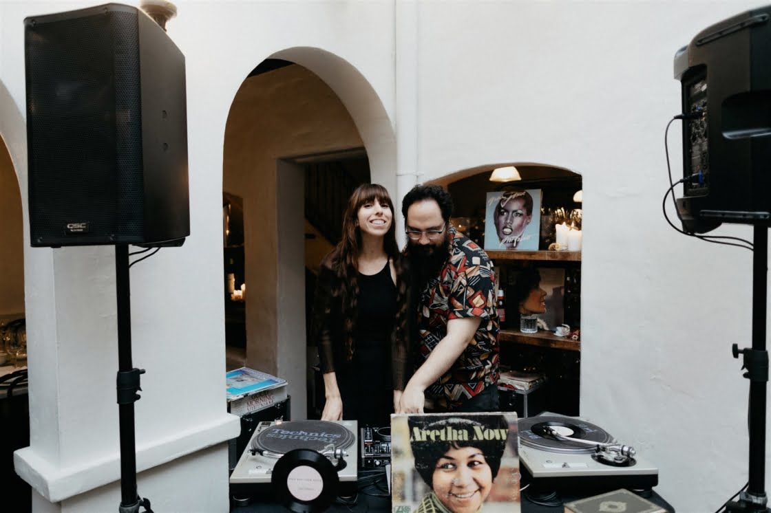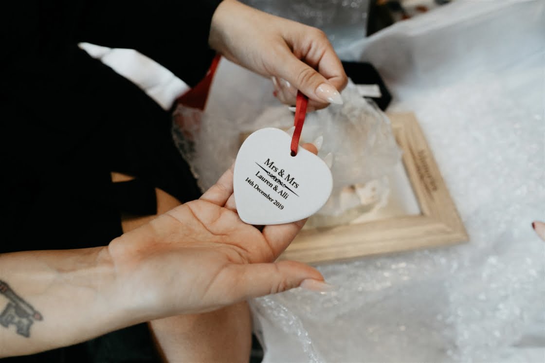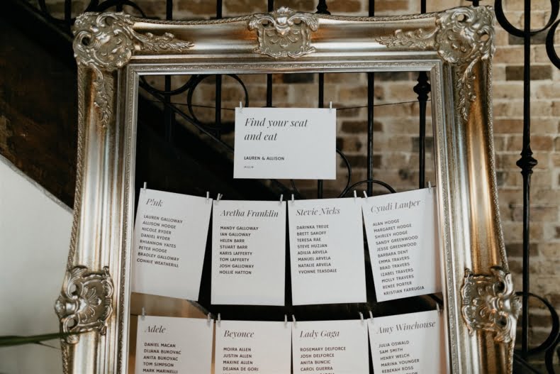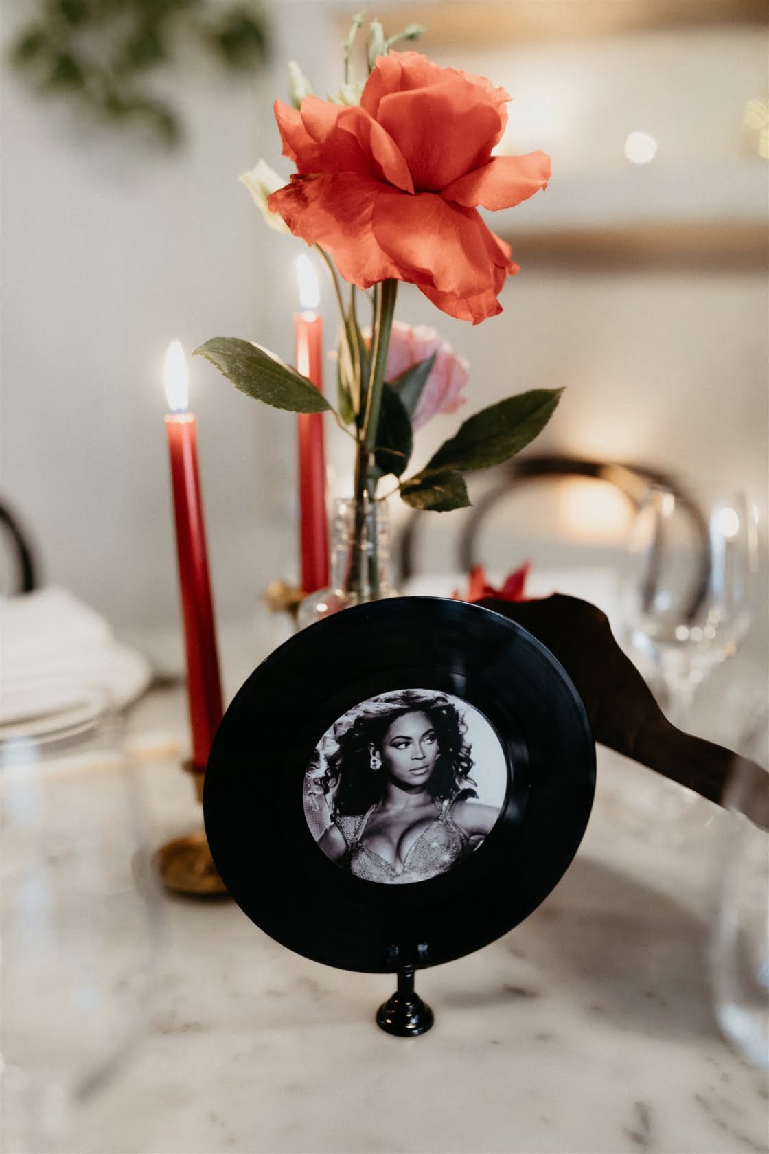 FAVOURITE DETAILS “We both love music and have spent the best part of 14 years going to see artists we love, or sitting at home listening to our vinyl collection. So, instead of table numbers, we custom made table names using 7” vinyl records with the faces of our favourite female artists. It injected a subtle dose of girl power and it was fun to watch people make their way to the Amy Winehouse table or the Stevie Nicks table. This was complemented by our DJ only playing vinyl records all night. Some of our earliest memories as a couple are centred around us both DJing at clubs in London, so the music was extra important.”