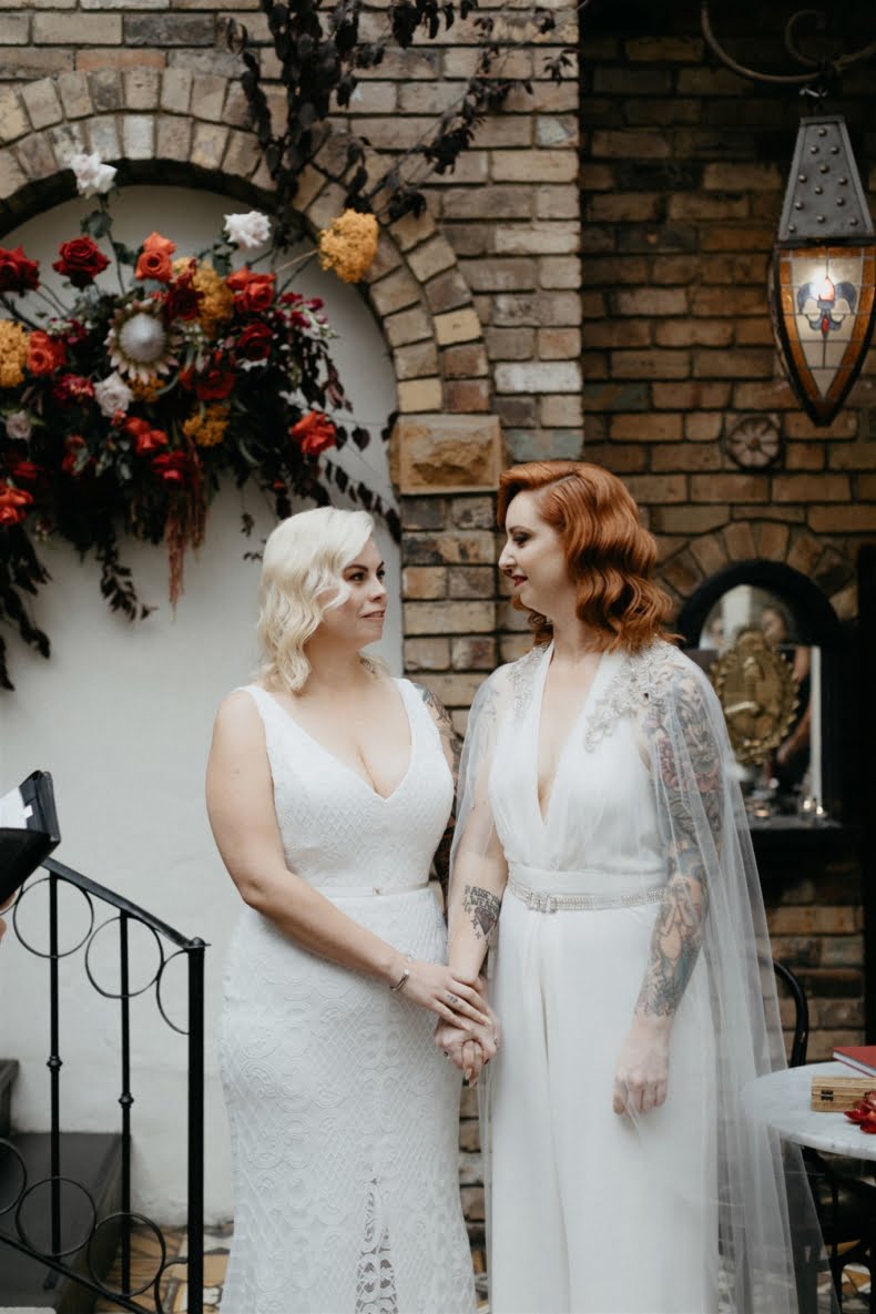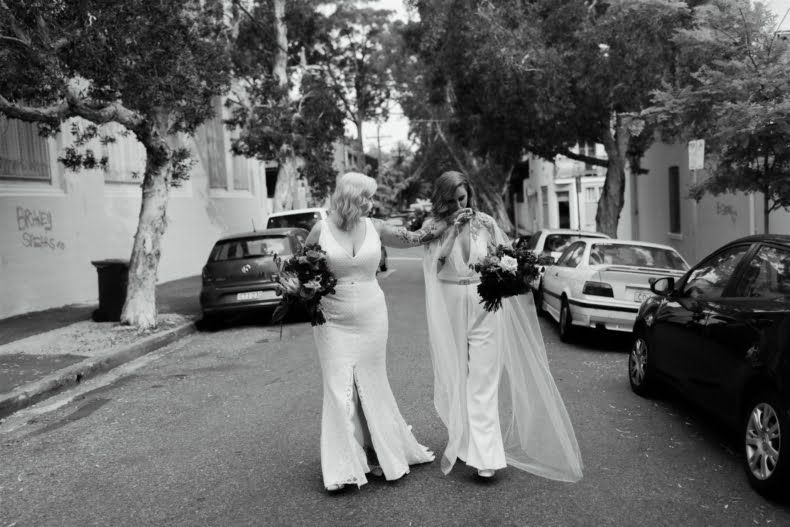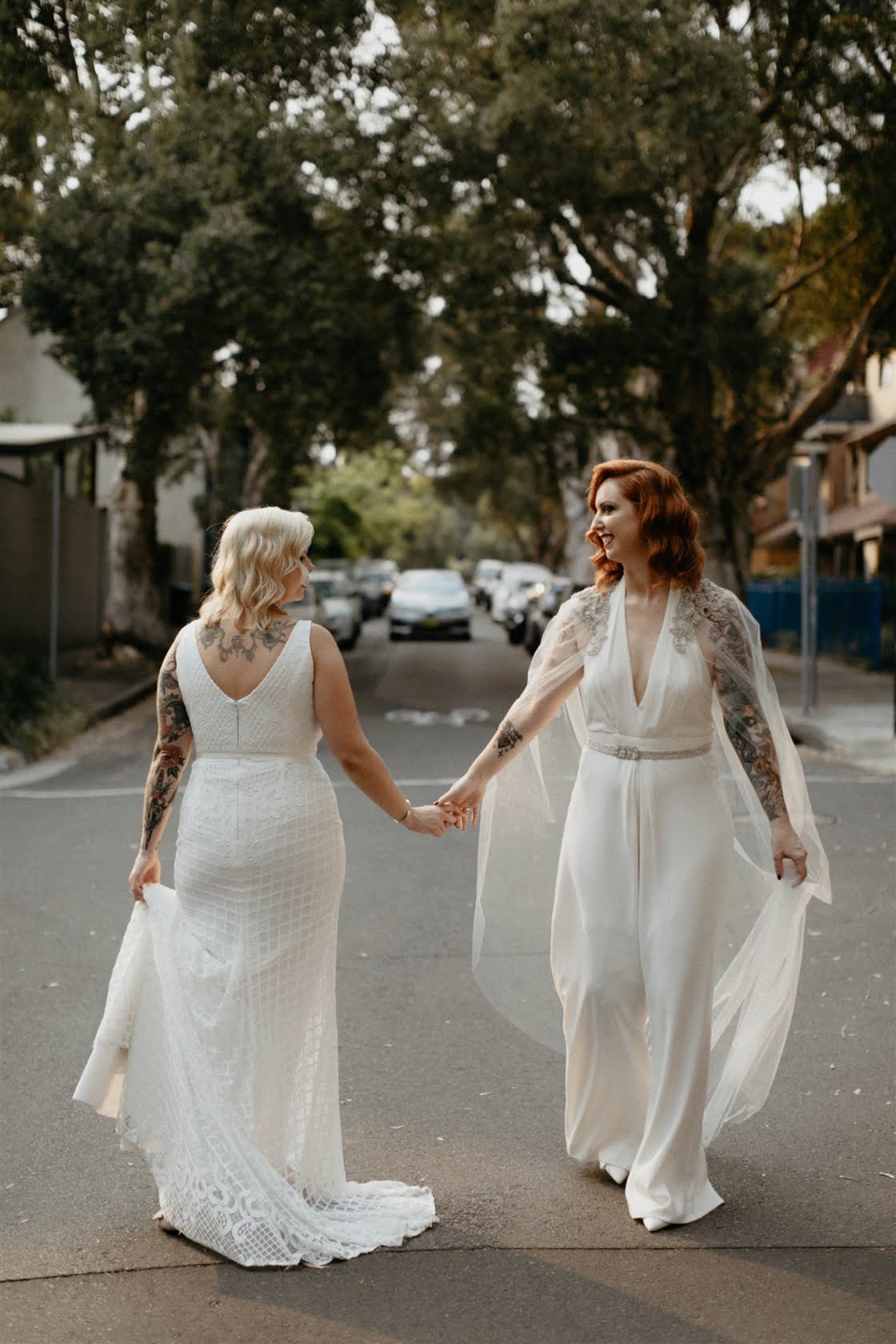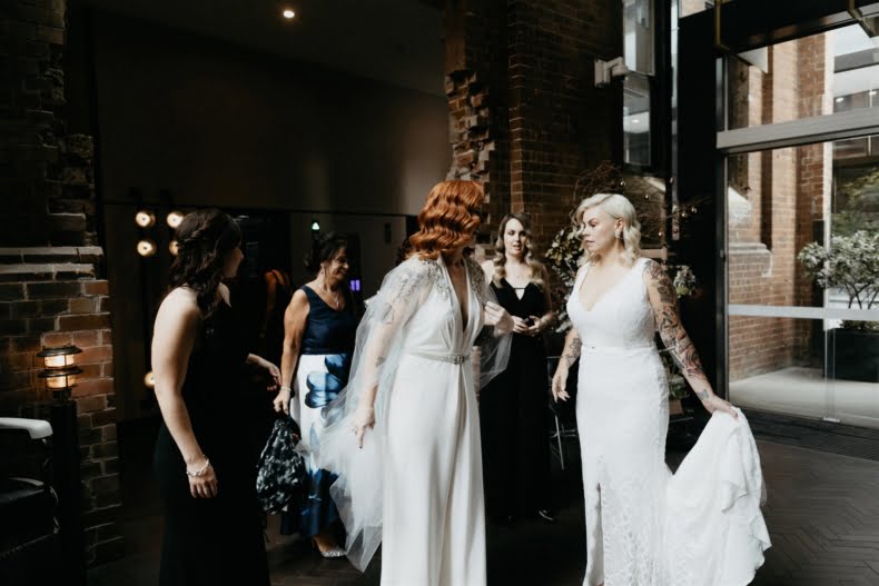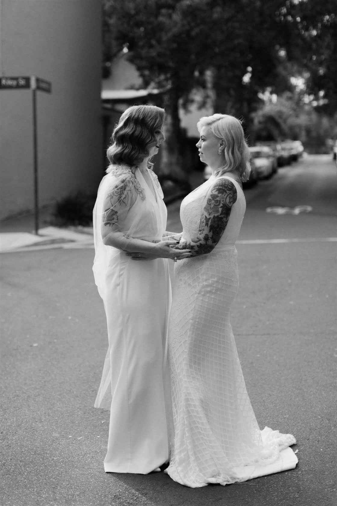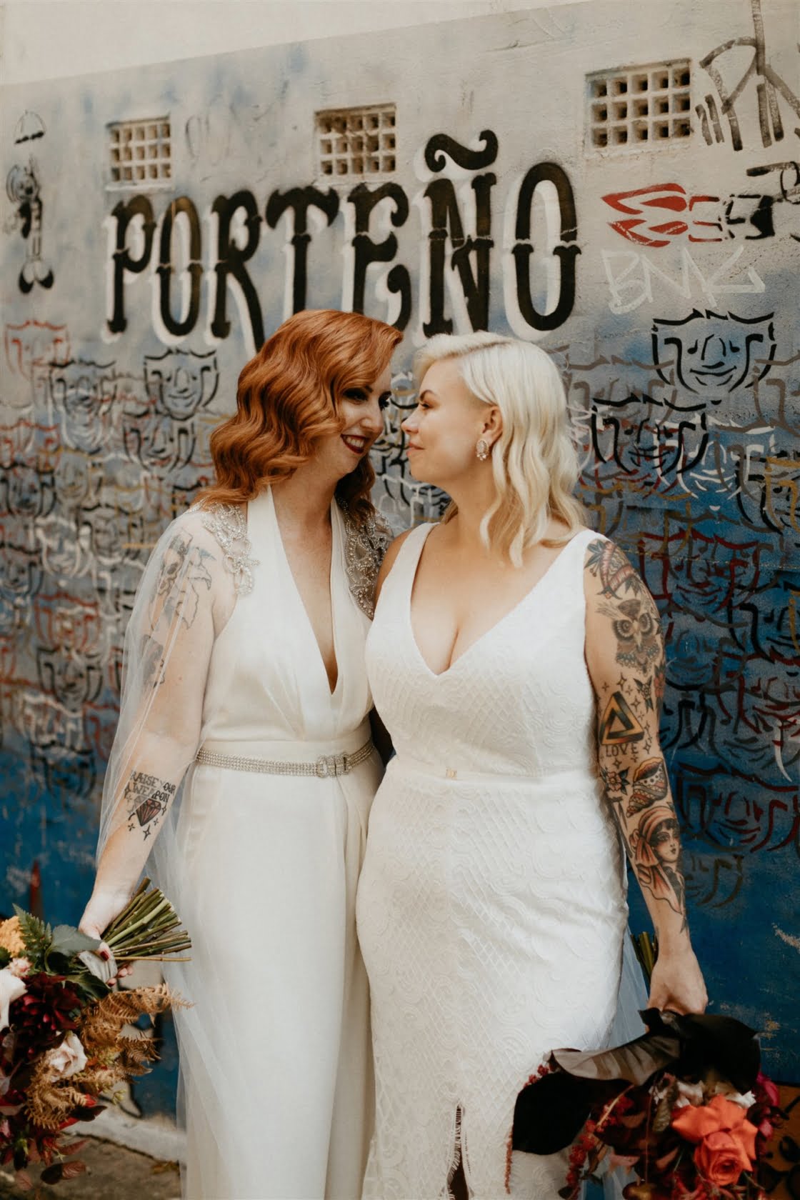 CONTRIBUTING VENDORS Photographer Robert Meredith Photography Florist Aisle Of Eden Venue & Catering Porteno Cake Rizzo’s Patisserie Desserts Nutie Donuts Wedding Favours The Rock Crystal Shop, Cave Cookies Photo Booth Undisposable Entertainment We Play Records Celebrant Barbara Dent Rings Eliise Maar (Lauren) BRIDE (Lauren) Dress Karen Willis Holmes Loungewear Glamour + Grace Bridal via Etsy Shoes Ted Baker Earrings Ella Rose Accessories Hair Missy Veyret Makeup Isabella Schimid Bridesmaid Dress Chancery BRIDE (Alli) Dress Jill Stuart Cape Amy Badikovich Loungewear Glamour + Grace Bridal via Etsy Shoes Ted Baker Belt Amore Treasure via Etsy Ring Uberkate Hair Missy Veyret Makeup Isabella Schimid Bridesmaid Jumpsuit Amelius