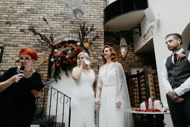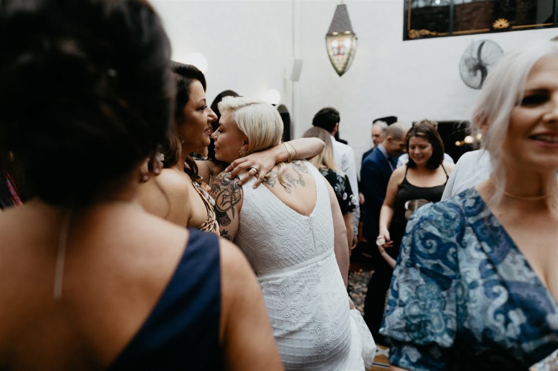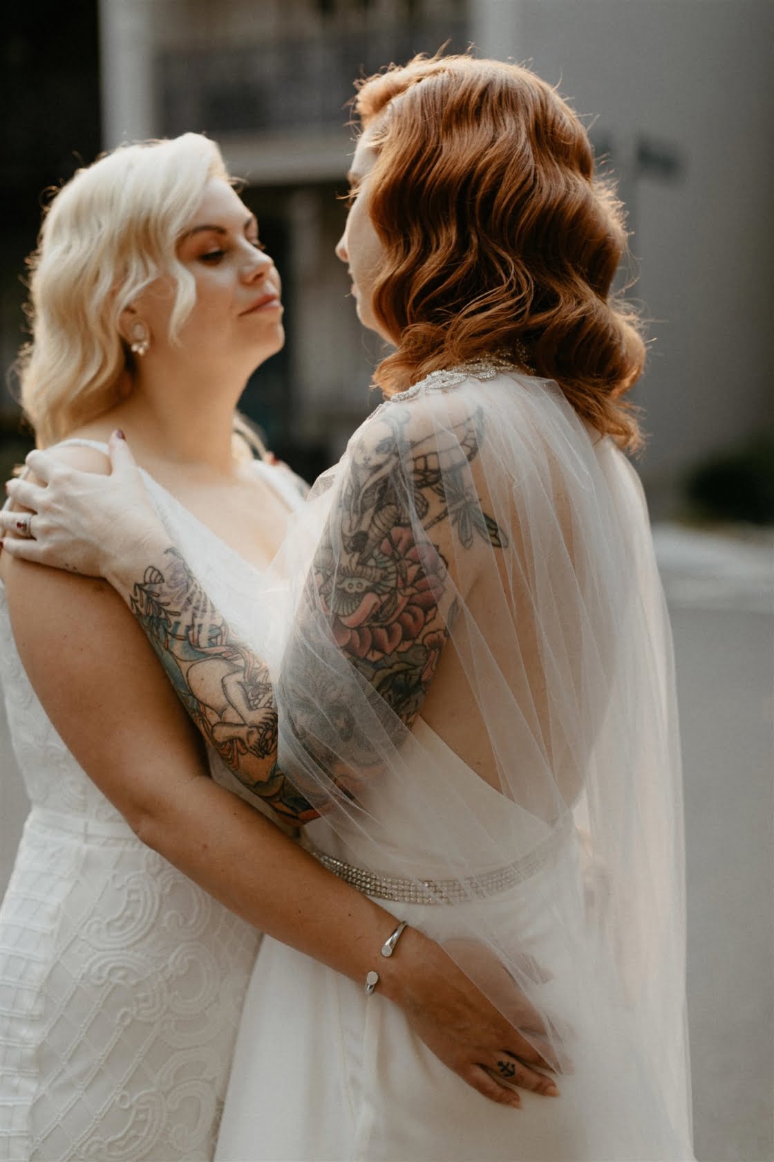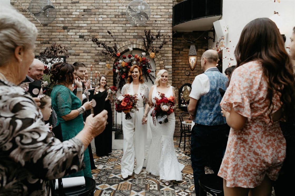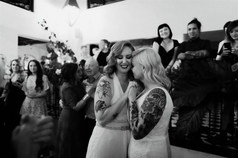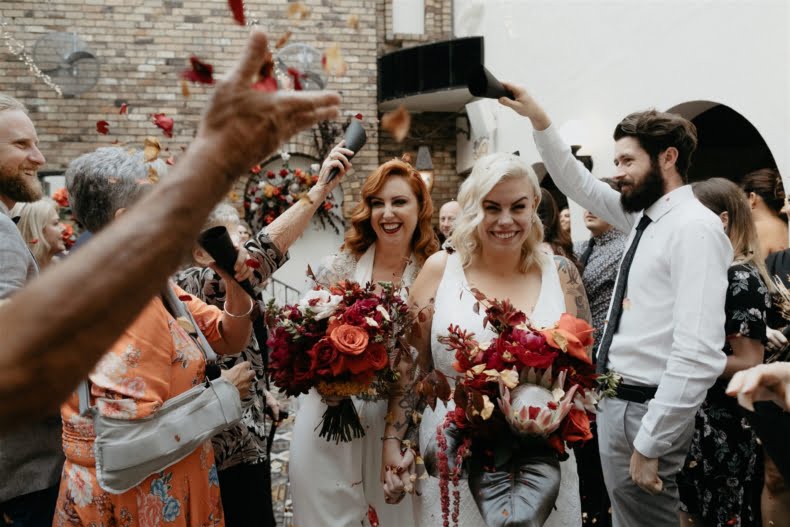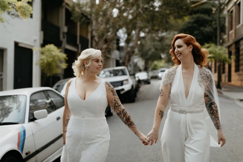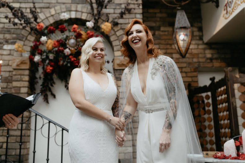 CONTRIBUTING VENDORS Photographer Robert Meredith Photography Florist Aisle Of Eden Venue & Catering Porteno Cake Rizzo’s Patisserie Desserts Nutie Donuts Wedding Favours The Rock Crystal Shop, Cave Cookies Photo Booth Undisposable Entertainment We Play Records Celebrant Barbara Dent Rings Eliise Maar (Lauren) BRIDE (Lauren) Dress Karen Willis Holmes Loungewear Glamour + Grace Bridal via Etsy Shoes Ted Baker Earrings Ella Rose Accessories Hair Missy Veyret Makeup Isabella Schimid Bridesmaid Dress Chancery BRIDE (Alli) Dress Jill Stuart Cape Amy Badikovich Loungewear Glamour + Grace Bridal via Etsy Shoes Ted Baker Belt Amore Treasure via Etsy Ring Uberkate Hair Missy Veyret Makeup Isabella Schimid Bridesmaid Jumpsuit Amelius