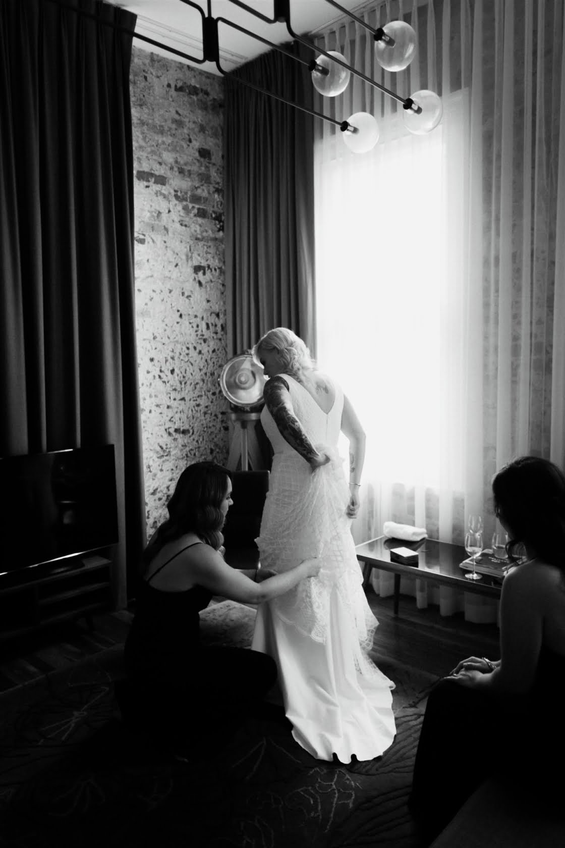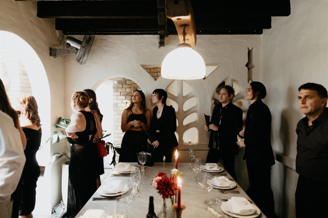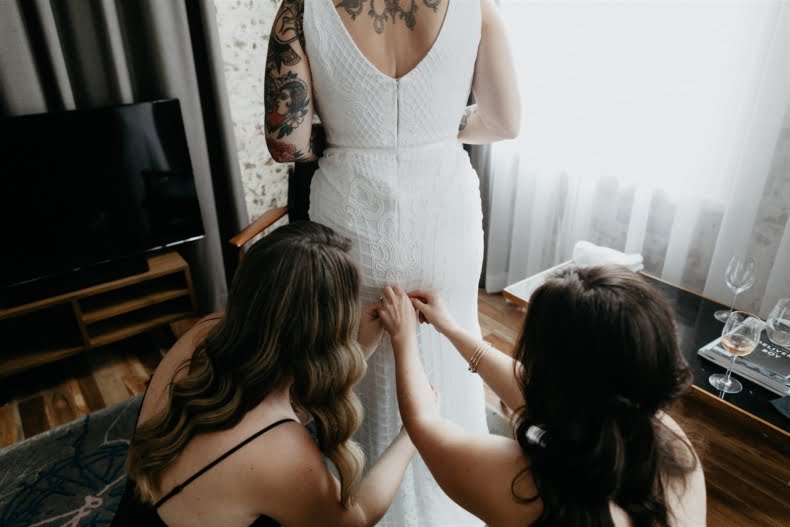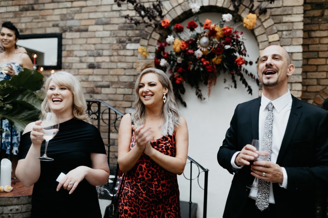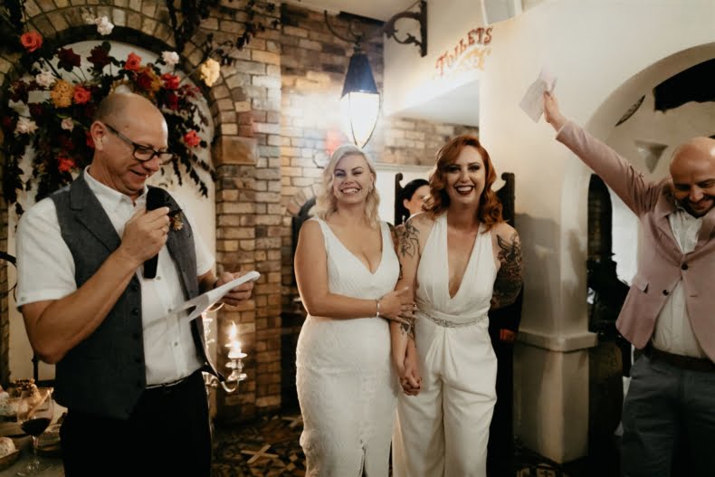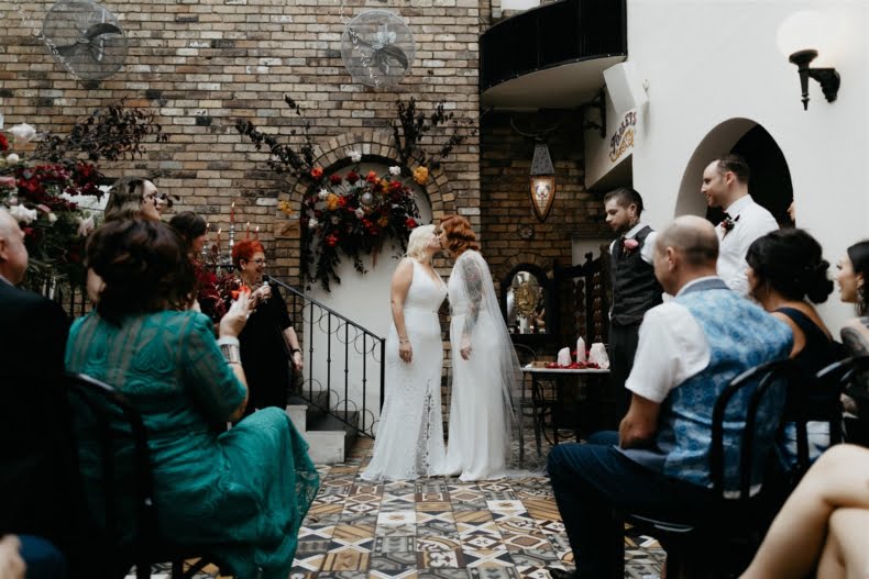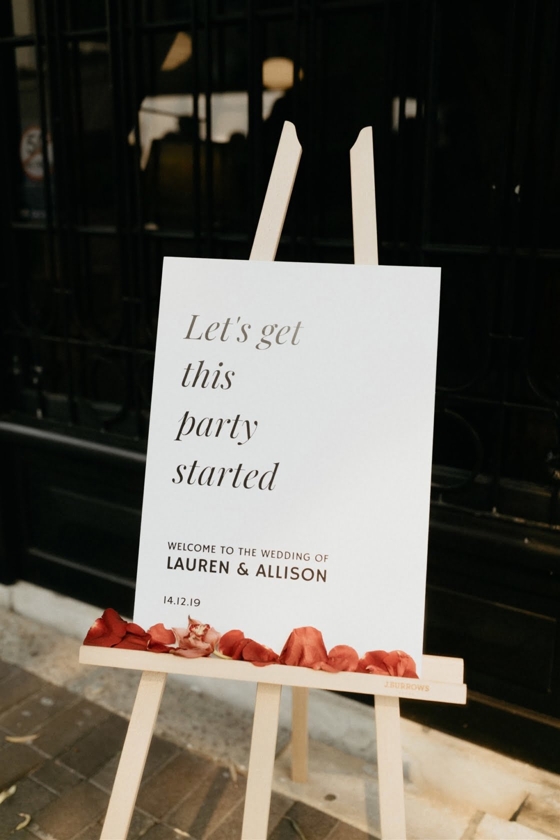 CONTRIBUTING VENDORS Photographer Robert Meredith Photography Florist Aisle Of Eden Venue & Catering Porteno Cake Rizzo’s Patisserie Desserts Nutie Donuts Wedding Favours The Rock Crystal Shop, Cave Cookies Photo Booth Undisposable Entertainment We Play Records Celebrant Barbara Dent Rings Eliise Maar (Lauren) BRIDE (Lauren) Dress Karen Willis Holmes Loungewear Glamour + Grace Bridal via Etsy Shoes Ted Baker Earrings Ella Rose Accessories Hair Missy Veyret Makeup Isabella Schimid Bridesmaid Dress Chancery BRIDE (Alli) Dress Jill Stuart Cape Amy Badikovich Loungewear Glamour + Grace Bridal via Etsy Shoes Ted Baker Belt Amore Treasure via Etsy Ring Uberkate Hair Missy Veyret Makeup Isabella Schimid Bridesmaid Jumpsuit Amelius