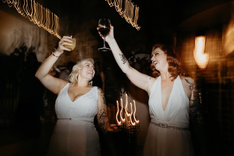 Together for 14 years, these two lovely ladies met in London at a P!nk concert, way back in 2006. As Alli describes it, “Lauren travelled to London, from Northamptonshire, for our first date and never went home!” The duo were engaged for a whopping 7 years, waiting for the government to get their act together, so you best believe that by the time their big day rolled around, good times were abundant. Opting for luxe vintage-inspired bridal looks, Lauren went with bridal legend Karen Willis Holmes whilst Alli donned a lush wide-leg jumpsuit and cape, with both gals babin’ waves courtesy of HM fave Missy Veyret. Robert Meredith was on hand to capture all the treasured memories, so you are going to want to scroll all the way down…