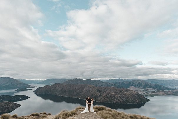 CREDITS Photographer Lauren Campbell // Event Planner and Stylist The Elopement Collective // Florist Tracey Morrow at Crimson Wedding Flowers // Ceremony and Reception venue Roys Peak Mountain, NZ // Celebrant Josh Withers at The Elopement Collective // Brides wedding band James Allen // Transport Wanaka Helicopters // Bridal gown designer Pronovias // Bridal Boutique BHLDN from Anthropologie // Accessories Nordstrom // Hair Hair To Wed // Makeup Katie Medley.