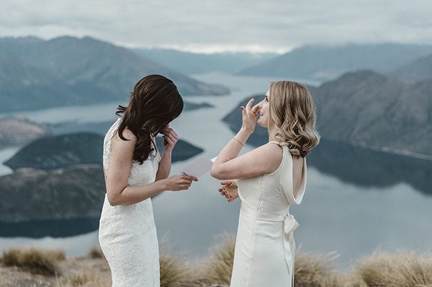 The pair got cracking on their wedding plans, however at a certain point in their decision making, they realised a traditional do just wasn’t for them. “We are SO happy we eloped. We are two simple girls who just wanted to focus on each other that day,” Lauren adding that a highlight to their day was seeing the spot the couple would say their vows, atop the incredible mountains of Queenstown.