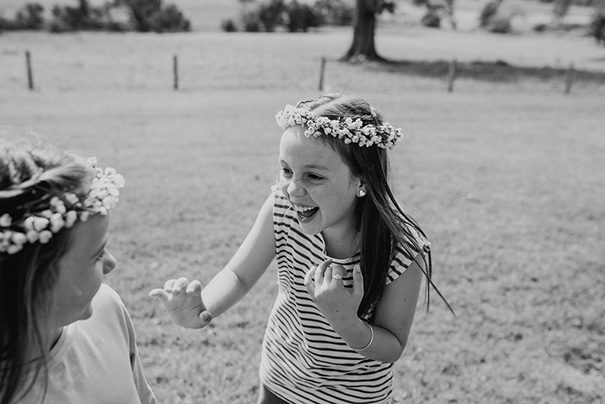 CREDITS Photographer Anna Turner Weddings // Stationery DoItYourselfWeddings via Etsy // Ceremony venue Meroo Union Church, Berry // Reception venue Jaspers Berry // Cake Scarlett and Me Cakes // Wedding favours Donation to charities Bowel Cancer Australia, Diabetes Australia and Pillars of Strength // Entertainment Jarrod Sherman // Wedding bands Epica Jewellers // Wine Dynamic Wines // Bridal gown designer Karen Willis Holmes // Shoes Asos and Converse // Bridesmaid dresses Yeojin Bae // Bridesmaid shoes Nine West // Shoes RM Williams // Groom and Groomsmen suits Stewart Menswear // Flower girl outfits Dresses from Tea Princess // Page boy outfits Country Road.