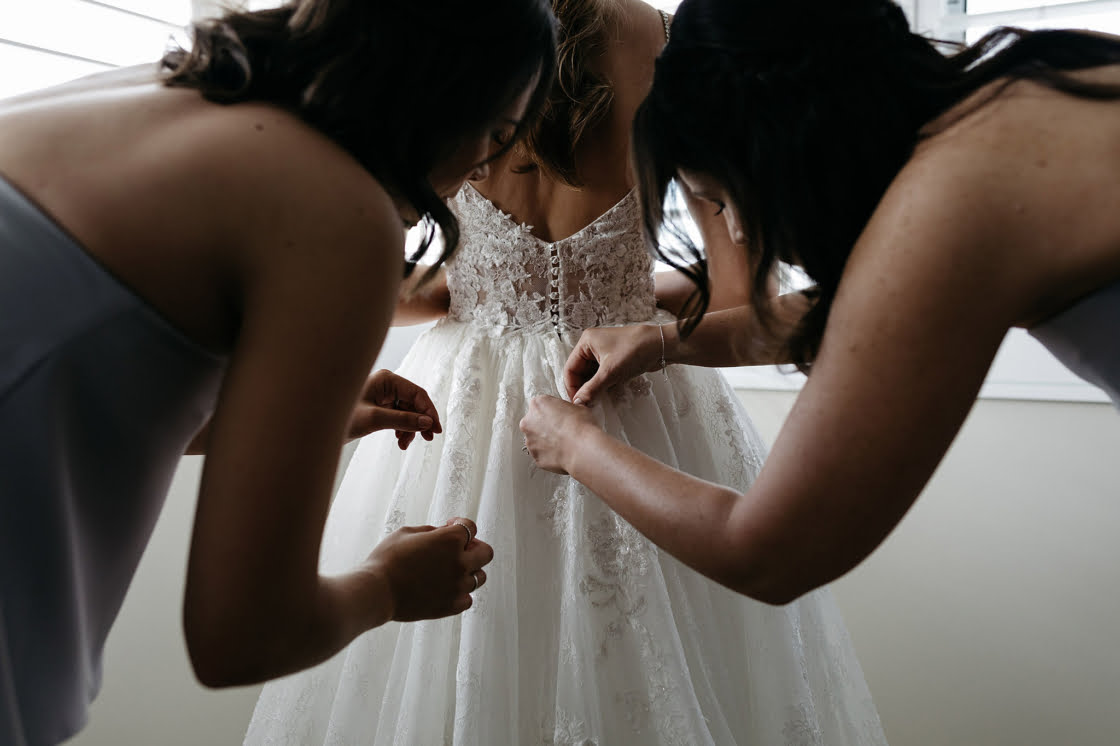 CONTRIBUTING VENDORS Photographer Ali Bailey Cinematographer Nathan Kaso Event Planner Laura Willis of Wanderlust Creative Florist Botanica Fresh Flowers Stationery Sparklers & Confetti, White Ink Design Co Venue Tanglewood Estate Catering Provider Cake Provider Hire Items Claire and Clay Entertainment The White Tree Band Celebrant Kate Morgan Rings Denzil Price Jewellery (Friend) Transport Silver Wings Chauffeured Limousines BRIDE Dress Enzoani via White Lily Couture Robes Sleeping With The Enemy Veil White Lily Couture Shoes Nina Shoes Earrings & Bracelet Samantha Wills Hair & Makeup Megan Harrison BRIDESMAIDS Dress Esther Luxe Shoes Billini GROOM Suit Mr A Taylor Tie Michael Innis Menswear Cufflinks OTAA Shoes Aquila Watch Breitling Barber Mr Snippets