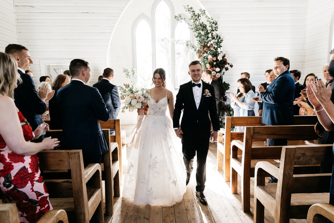It’s not just the sweet whitewashed chapel that has us swooning over this wedding guys. Meet Lauren and Damon – these two cuties have been besties since they were 15. Despite living in Brisbane, they decided to have their wedding on the Mornington Peninsula as once they discovered Tanglewood Estate they knew there was “really nowhere else like it”. Enlisting a whole host of Hello May Vendors (say hello Sparklers & Confetti, The White Tree, Kate Morgan) the couple opted for a classic romantic wedding vibe and tied the knot after a two-year engagement. Lens lady Ali Bailey and cinematographer legend Nathan Kaso were there to make sure Lauren and Damon’s big day was captured from every angle. Scroll down for the details…
